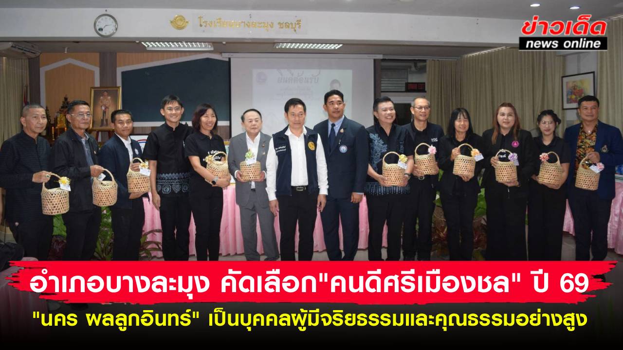 สำหรับการลงพื้นที่ในครั้งนี้ อำเภอบางละมุงได้พิจารณาเสนอชื่อ นายนคร ผลลูกอินทร์ เข้ารับการคัดสรรเป็นคนดีศรีเมืองชล ใน สาขาผู้ให้บริการทางสังคมหรือพัฒนาชุมชน โดยมี นายอนุศักดิ์ พิริยะอมร นายอำเภอบางละมุง พร้อมด้วย นายสมพันธ์ เพชรตระกูล ประธานชมรมคนดีศรีเมืองชล ตลอดจนตัวแทนกลุ่มพลังมวลชน และผู้นำท้องถิ่นร่วมให้การต้อนรับ พร้อมทั้งกล่าวสนับสนุนและร่วมนำเสนอผลงานที่โดดเด่นของนายนคร ต่อคณะกรรมการ