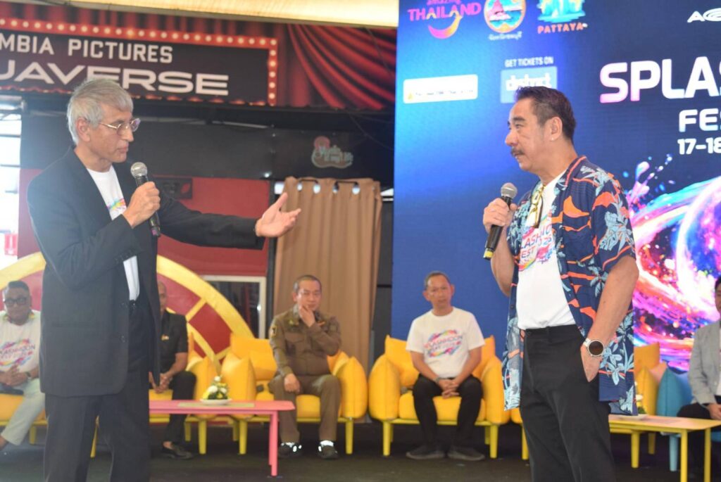วันที่ 27 กุมภาพันธ์ 2569 ที่ ห้องประชุมสวนน้ำ Columbia Pictures Aquaverse อ.สัตหีบ จ.ชลบุรี นายนริศ นิรามัยวงศ์ ผู้ว่าราชการจังหวัดชลบุรี มอบหมายให้นางอำไพ ศักดานุกูลจิต สไลวินสกี้ ท่องเที่ยวและกีฬาจังหวัดชลบุรี พร้อมด้วย นายปรเมศวร์ งามพิเชษฐ์ นายกเมืองพัทยา นายณัฐวุฒิ อนุโยธา นายอําเภอสัตหีบ และ พ.ต.อ.พิสิทธิ์ ตั้งศิริเสถียร ผกก.สภ.นาจอมเทียน ร่วมเป็นประธานเปิดการแถลงข่าวจัดงาน “SPLASHMOON FEST 2026”
