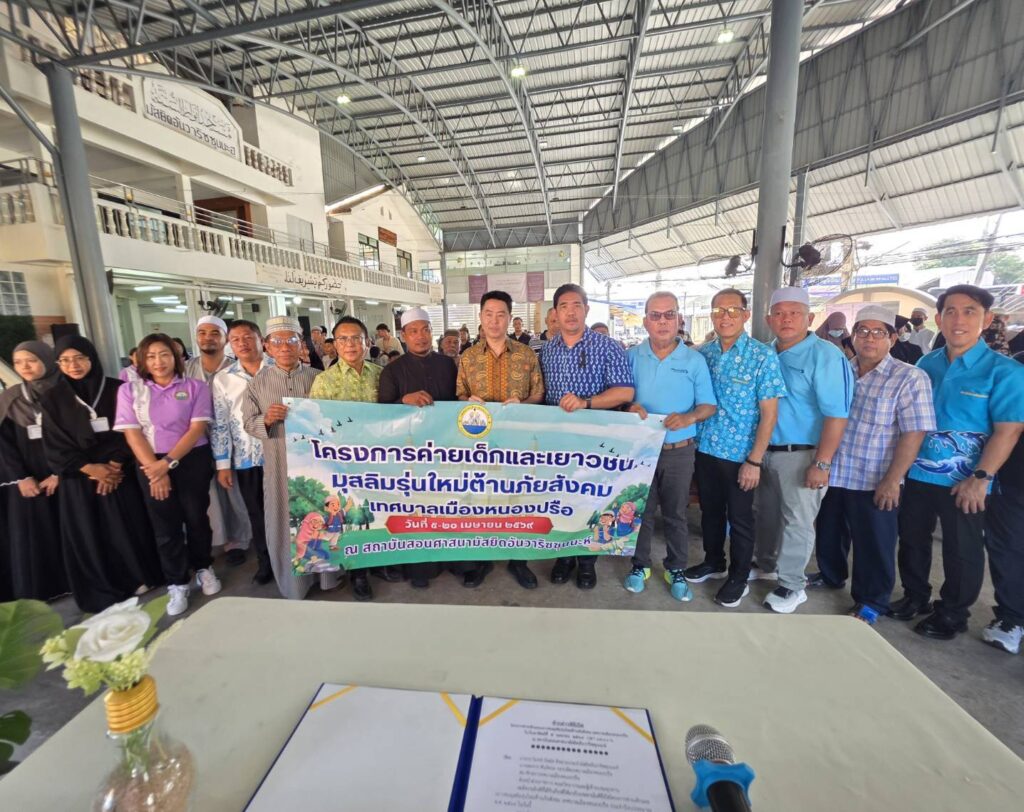 ในพิธีเปิดโครงการค่ายเด็กและเยาวชนมุสลิมรุ่นใหม่ต้านภัยสังคม เทศบาลเมืองหนองปรือ ประจำปีงบประมาณ 2569 ณ สถาบันสอนศาสนามัสยิดอันวาริซซุนนะห์ โดยมี นายวันชัย แสนงาม รองนายกเทศมนตรีเมืองหนองปรือ เป็นประธานกล่าวเปิดงาน ซึ่งมี นายสมควร พันธ์พระ รองปลัดเทศบาลเมืองหนองปรือ กล่าวรายงาน พร้อมด้วยนายนคร ผลลูกอินทร์ สมาชิก อบจ.ชลบุรี, คณะสมาชิกสภาเทศบาลเมืองหนองปรือ, คณะสมาชิกสภาเมืองพัทยา, นายสยาม มากอุส่าห์ ผู้อำนวยการโรงเรียนโพธิสัมพันธ์พิทยาคาร, นายปราโมทย์ นิหมัด อิหม่ามประจำมัสยิดอันวาริชซุนนะห์, หัวหน้าส่วนราชการ คณะวิทยากร และพี่น้องชาวมุสลิมเข้าร่วมอบรม