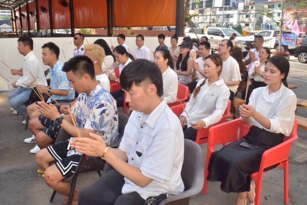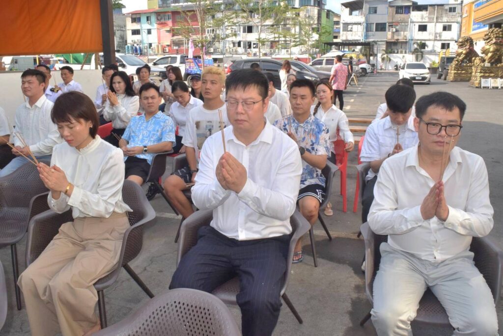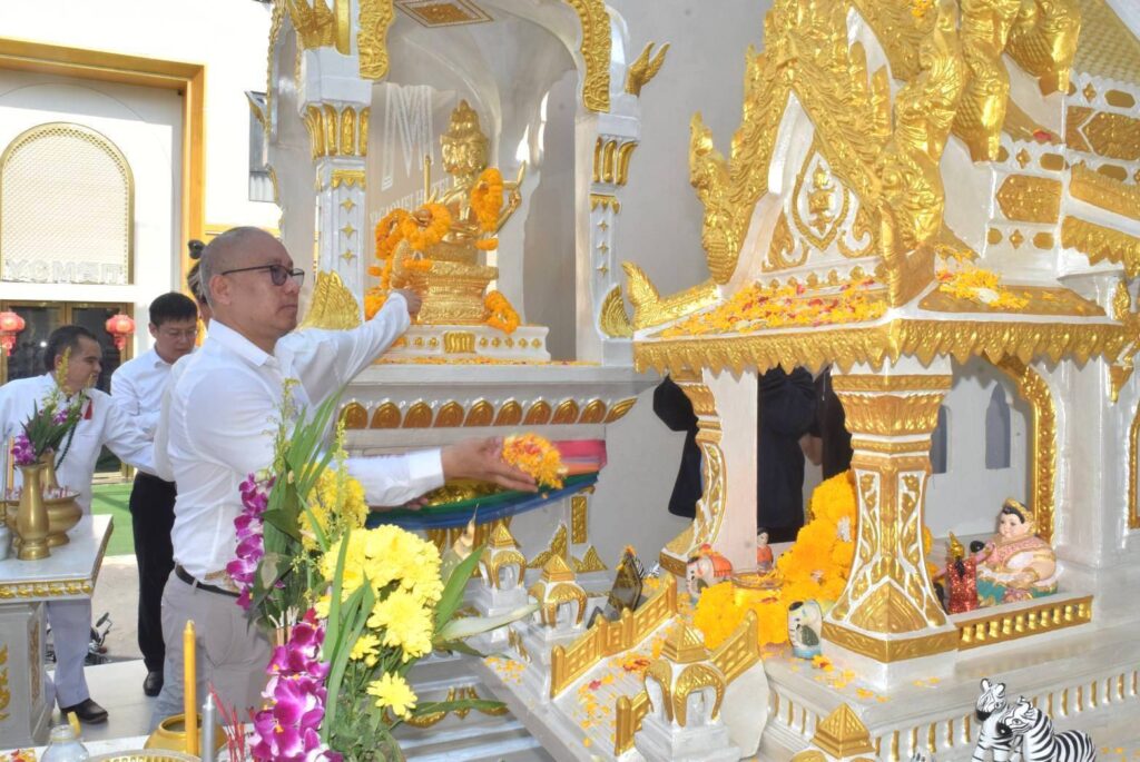 พิธีเริ่มขึ้นในเวลา 08.30 น. ด้วยการสักการะพระพรหมบริเวณด้านหน้าบริษัท เพื่อความเป็นสิริมงคลแก่สถานประกอบการ โดยได้นิมนต์พระสงฆ์ 9 รูปจากวัดบุณย์กัญจนาราม (วัดหนองพังแค) มาเจริญพระพุทธมนต์ก่อนจะเข้าสู่พิธีถวายภัตตาหารเพลแด่พระสงฆ์ในเวลา 09.30 น. ซึ่งผู้เข้าร่วมงานต่างพร้อมใจกันแต่งกายด้วยชุดสุภาพโทนสีขาวและสีอ่อน สะท้อนถึงความบริสุทธิ์และการเริ่มต้นสิ่งดีงามในศักราชใหม่
