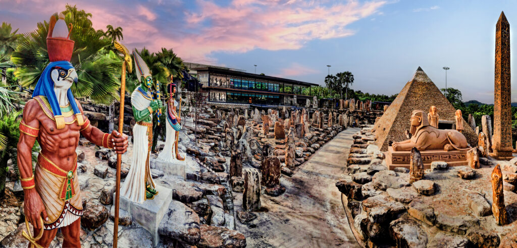 สวนนงนุชพัทยา บนพื้นที่กว่า 1,700 ไร่ ถือเป็นหนึ่งในแหล่งท่องเที่ยวเชิงธรรมชาติและวัฒนธรรมระดับโลก มีสวนสวยมากกว่า 60 สวน และมีการรวมพันธุ์ไม้จากทั่วทุกมุมโลกกว่า 18,000 ชนิด พร้อมไฮไลต์สุดตื่นตาอย่างโซนไดโนเสาร์มากกว่า 1,800 ตัว และแลนด์มาร์กใหม่ล่าสุด “เมืองอียิปต์” ที่ยิ่งใหญ่ตระการตา ประกอบด้วยพีระมิดและรูปปั้น Ennead (เอนเนียด) หรือมหาเทพในตำนานอียิปต์โบราณ ซึ่งได้ก่อสร้างเสร็จแล้ว 12 องค์ จากทั้งหมด 23 องค์ มีความสูงกว่า 5 เมตร ถือเป็นแหล่งเรียนรู้และถ่ายภาพที่หาชมได้ยากในประเทศไทย