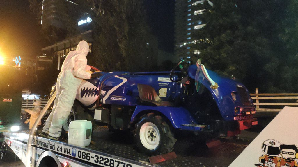 นายกเมืองพัทยาสั่งรถฉีดพ่นแอลกอฮอล์ฆ่าเชื้อโรคป้องกันการแพร่กระจายไวรัสโควิด-19 รับคืนข้ามปี