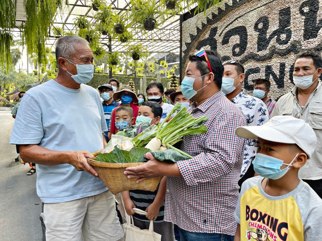 เมื่อเวลา 10.00 น. ของวันที่ 31 ม.ค. 64 นายพรพิทักษ์ ประจงศิลป์ ผู้ใหญ่บ้าน หมู่ 3 บ้านเนินสามัคคี ต.บางเสร่ อ.สัตหีบ จ.ชลบุรี พร้อมด้วยชาวบ้านเกือบ 100 คน ซึ่งอยู่บริเวณโดยรอบๆ สวนนงนุชพัทยา ได้เดินทางมาพบนายกัมพล ตันสัจจา ประธานสวนนงนุช พัทยา โดยได้นำผัก ผลไม้ ที่ชาวบ้านปลูกเอง มามามอบให้เพื่อเป็นขวัญกำลังใจในการส่งเสริมการท่องเที่ยว