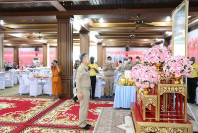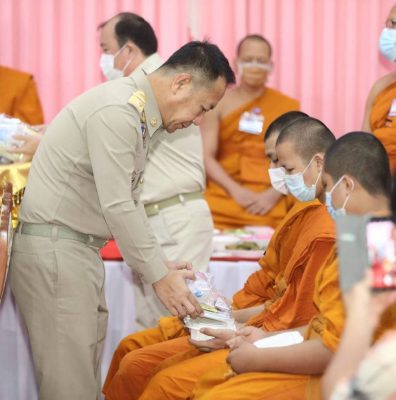 “นริศ นิรามัยวงศ” รองผู้ว่าราชการจังหวัดชลบุรี ประธานพิธีถวายภัตตาหารเพลและสิ่งของพระราชทานของพระบาทสมเด็จพระเจ้าอยู่หัว แด่พระภิกษุ สามเณร ในการสอบบาลีสนามหลวง ประจำปี 2564