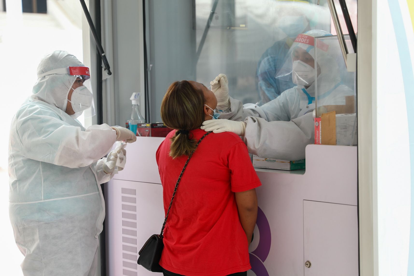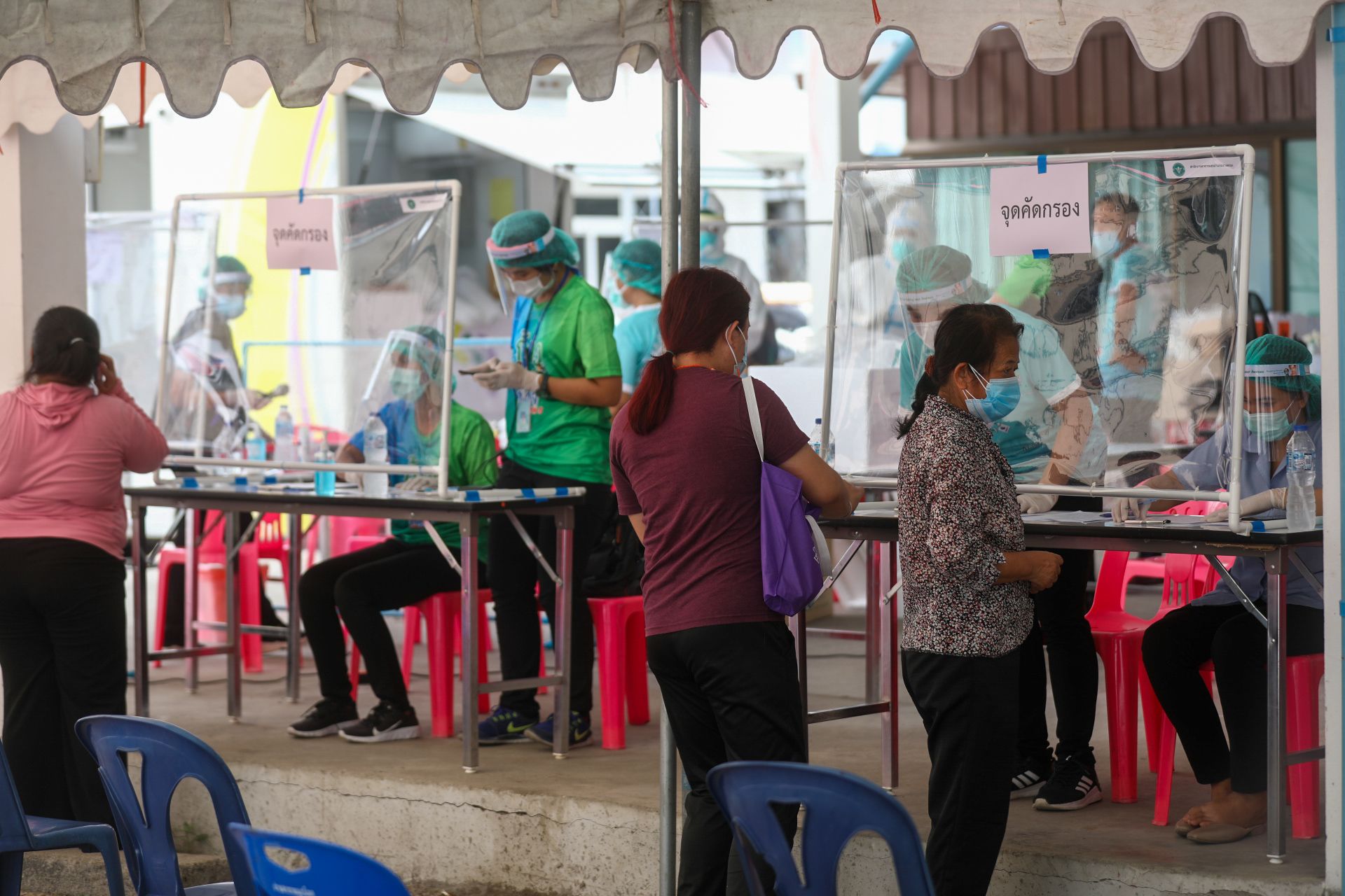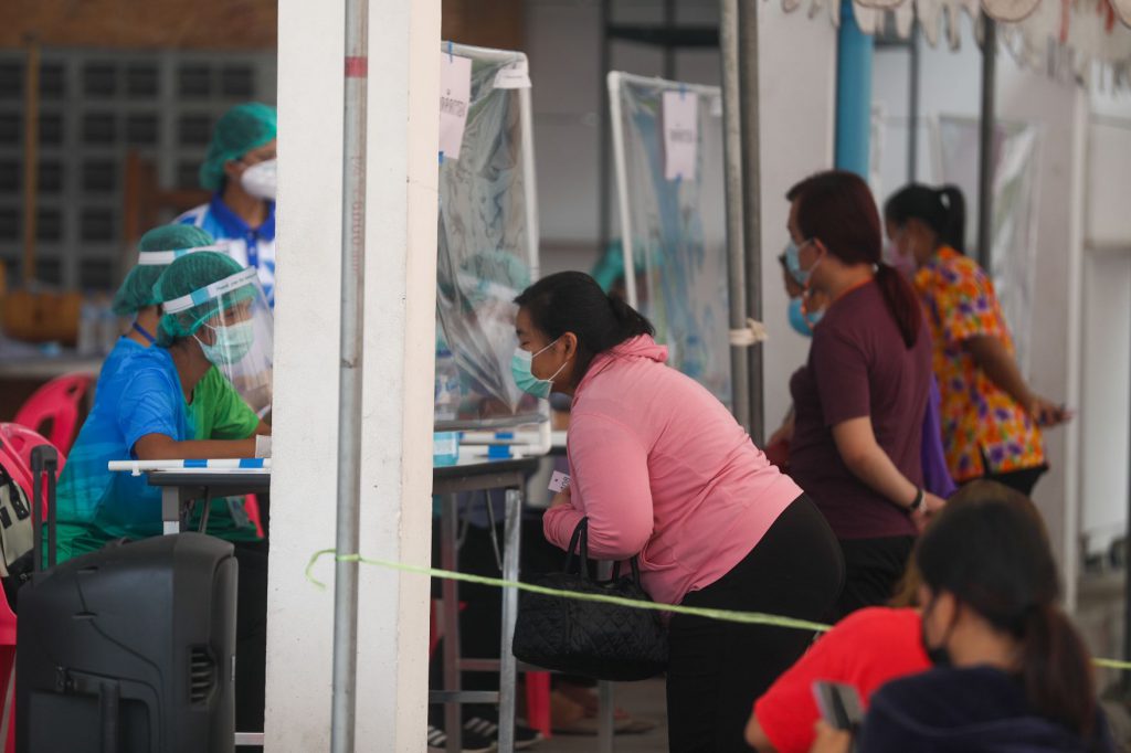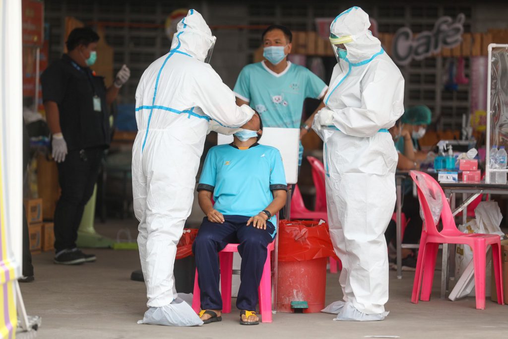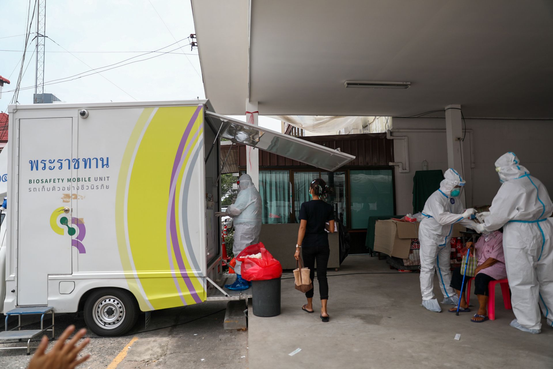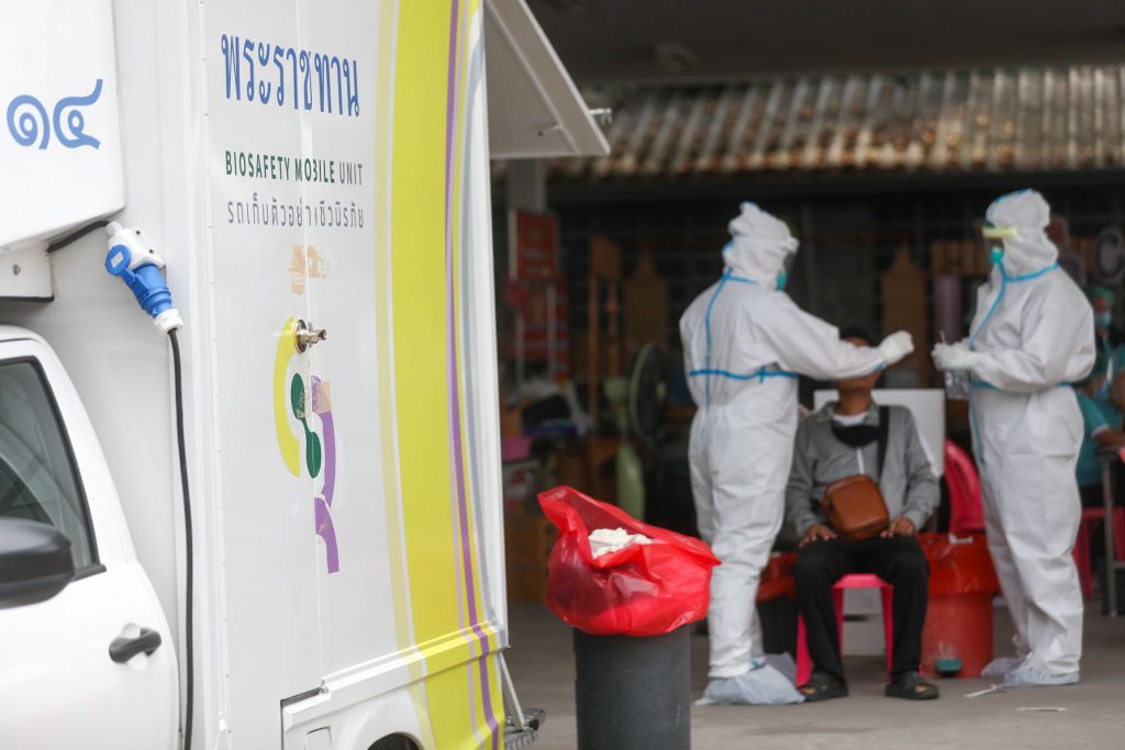 รถเก็บตัวอย่างชีวนิรภัยพระราชทานลุยตรวจหาโควิดให้ชาวบ้านบางละมุง