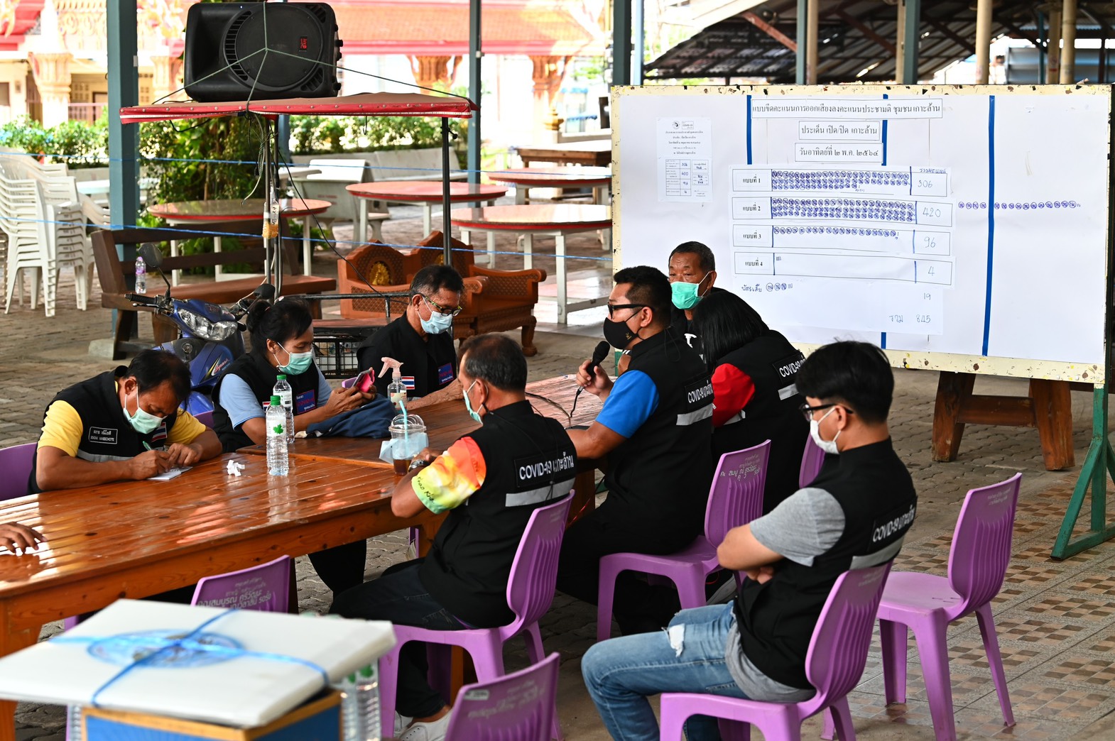 แบ่งเป็นบัตรดี 826 ใบ และบัตรเสีย 19 ใบ ผลการลงคะแนนปรากฏว่าชาวบ้านเลือกรูปแบบที่ 1 ปิดเกาะแบบห้ามทุกคนเข้า-ออกอย่างน้อย 15 วัน รวมทั้งสิ้น 306 เสียง, รูปแบบที่ 2 ปิดเกาะแบบงดนักท่องเที่ยวอย่างน้อย 15 วัน รวมทั้งสิ้น 420 เสียง, รูปแบบที่ 3 เปิดเกาะต่อไปภายใต้มาตรการของจังหวัดชลบุรีรวมทั้งสิ้น 96 เสียง และ 4.ไม่แสดงความคิดเห็นรวมทั้งสิ้น 4 เสียง