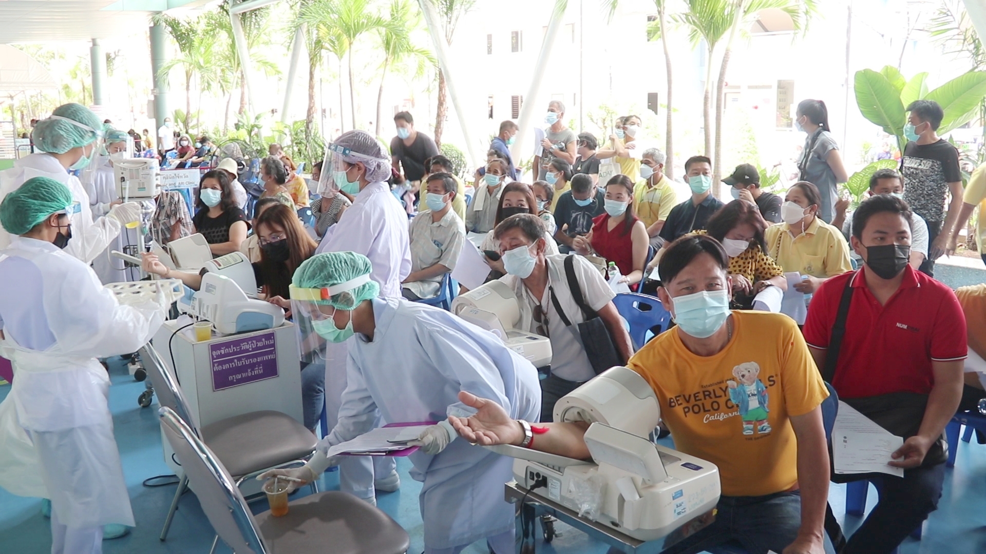 สำหรับในวันนี้ทางโรงพยาบาลเมืองพัทยาได้รับการจัดสรรวัคซีนแอสตร้าเซนเนก้า จำนวน 2,000 โดส เพื่อฉีดวัคซีนให้กับผู้ที่ลงทะเบียนผ่านระบบหมอพร้อม และบุคคลากรทางการแพทย์ กลุ่มอาชีพด่านหน้าอย่างครูและผู้สูงอายุ ที่มีการลงทะเบียนไว้กับโรงพยาบาลเมือง โดยทางโรงพยาบาลเมืองพัทยาได้ระดมทีมแพทย์ พยาบาล บุคลลากรทางการแพทย์ และเจ้าหน้าที่มาอำนวยความสะดวก ให้บริการประชาชนที่เข้ารับวัคซีน