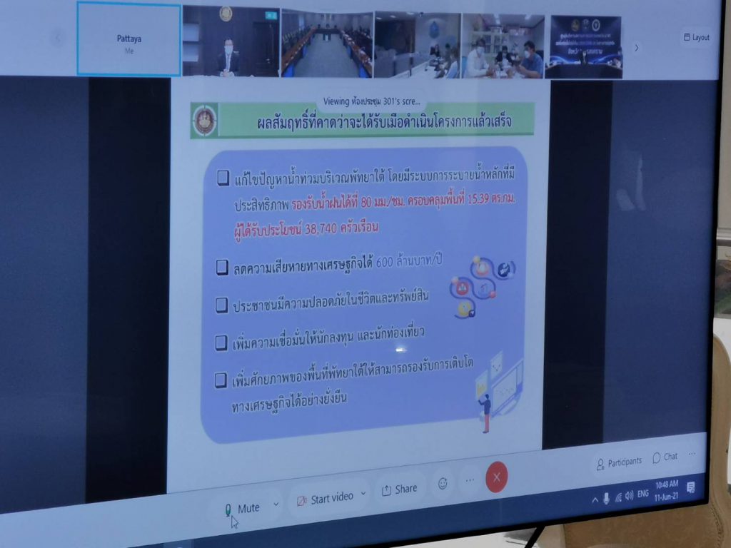 วันที่ 11 มิ.ย.64 นายสนธยา คุณปลื้ม นายกเมืองพัทยา เปิดเผยว่า พลเอก ประวิตร วงษ์สุวรรณ รองนายกรัฐมนตรี ได้เป็นประธานการประชุมคณะอนุกรรมการขับเคลื่อนโครงการขนาดใหญ่และโครงการสำคัญ ครั้งที่ 3/2564 ผ่านระบบ VDO Conference ที่ทำเนียบรัฐบาล โดยมี ดร.สมเกียรติ ประจำวงษ์ เลขาธิการสำนักงานทรัพยากรน้ำแห่งชาติ (สทนช.) นายชยันต์ เมืองสง รองเลขาธิการ สทนช. และนายกเมืองพัทยา พร้อมด้วยผู้แทนหน่วยงานที่เกี่ยวข้อง เข้าร่วมประชุม อาทิ กรมชลประทาน กรมโยธาธิการและผังเมือง สำนักงบประมาณ สำนักงานบริหารหนี้สาธารณะ เมืองพัทยา กรมทรัพยากรทางทะเลและชายฝั่ง สำนักงาน กปร. กรมทรัพยากรน้ำ กรมทรัพยากรน้ำบาดาล กรมเจ้าท่า เป็นต้น