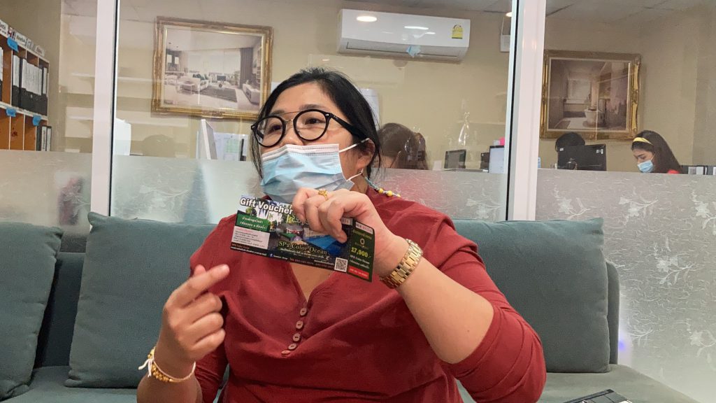 ต่อมาทีมผู้สื่อข่าวได้ประสานงานติดต่อไปยังบริษัทเอเยนต์พร็อพเพอร์ตี้ที่ได้ข้อมูลมา ก่อนที่จะได้รับการนัดหมายจากผู้บริหารบริษัท ให้สื่อมวลชนเข้าพบพร้อมชี้แจงรายละเอียดต่างๆ เพื่อสร้างความเข้าใจที่ถูกต้องต่อเรื่องที่เกิดขึ้นกับสาธารณชน โดย น.ส.จุฑารัตน์ ขาวโกมล ผู้บริหาร บริษัท คัลเลอร์ โอเชี่ยน จำกัด ที่ทำธุรกิจด้านอสังหาริมทรัพย์เมืองพัทยา เล่าว่า ตัวเองได้ทำธุรกิจทั้งในส่วนของเอเยนซี่พร็อพเพอร์ตี้ โรงผลิตน้ำดื่ม ร้านอาหาร และรีสอร์ท จึงสามารถบริหารจัดการนำเอาธุรกิจต่างๆ ในครอบครัวมาปรับเป็นโปรโมชั่นลดราคาให้ลูกค้า