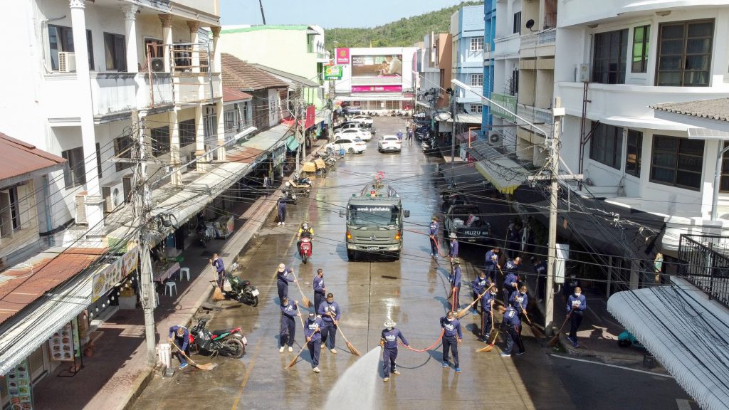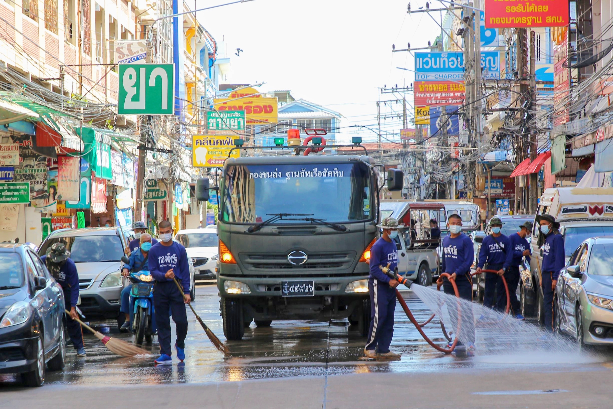 กองทัพเรือบูรณาการร่วมกับหน่วยงานราชการในพื้นที่สัตหีบ จัดกิจกรรมจิตอาสา “สัตหีบปลอดภัยต้านภัยไวรัส COVID – 19”