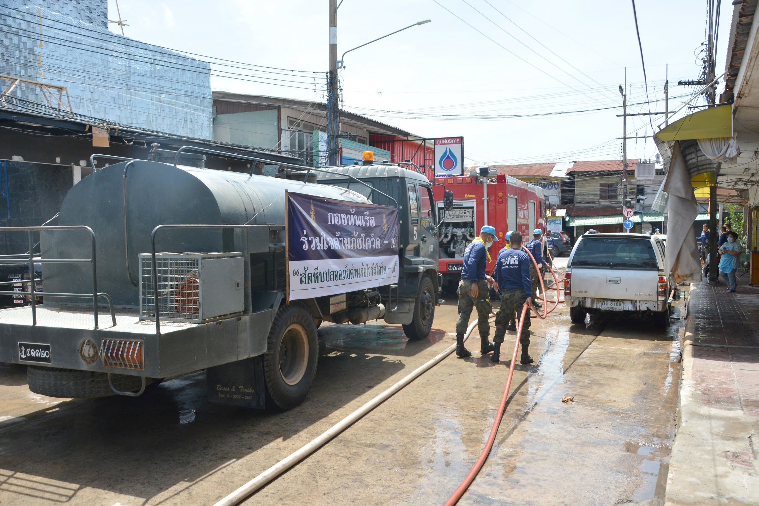 กองทัพเรือบูรณาการร่วมกับหน่วยงานราชการในพื้นที่สัตหีบ จัดกิจกรรมจิตอาสา “สัตหีบปลอดภัยต้านภัยไวรัส COVID – 19″