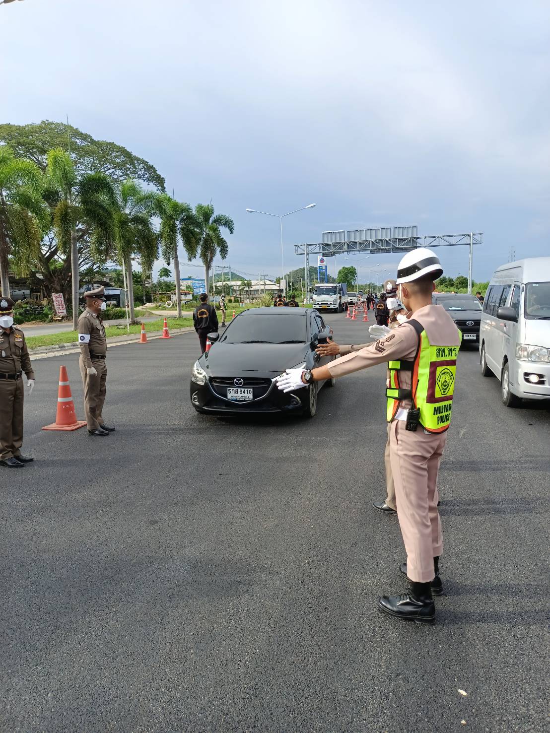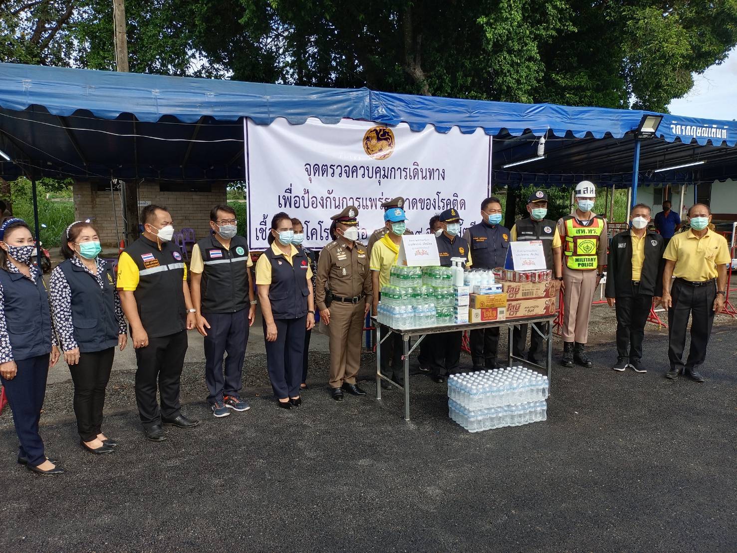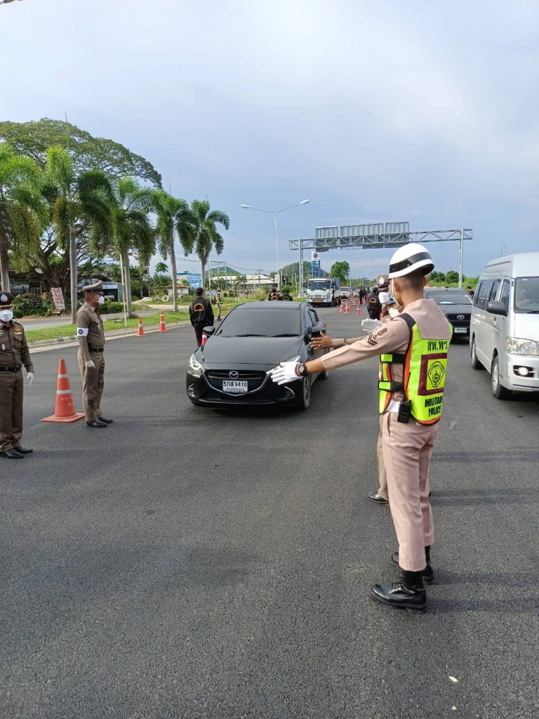 ฐานทัพเรือสัตหีบ ร่วมกับหน่วยงานพื้นที่อำเภอสัตหีบ ตั้งจุดตรวจคัดกรองป้องกัน COVID – 19 บริเวณแยกเกษมพล ถนนสาย 331 จังหวัดชลบุรี