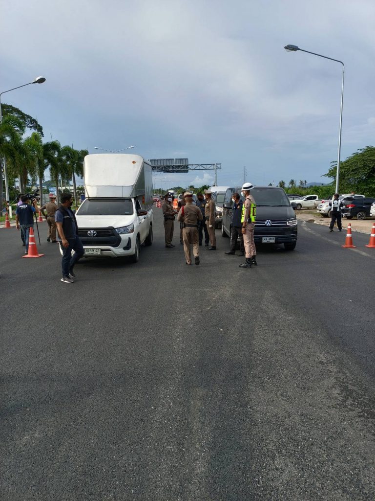 เรื่อง ตั้งจุดตรวจควบคุมการเดินทางเพื่อป้องกันการแพร่ระบาดของโรคติดเชื้อไวรัสโคโรน่า 2019 เพื่อให้ประชาชนปฏิบัติตามมาตรการป้องกัน ณ แยกเกษมพล ถนนสาย 331 อำเภอสัตหีบ จังหวัดชลบุรี เมื่อวันที่ 13 กรกฎาคม 2564