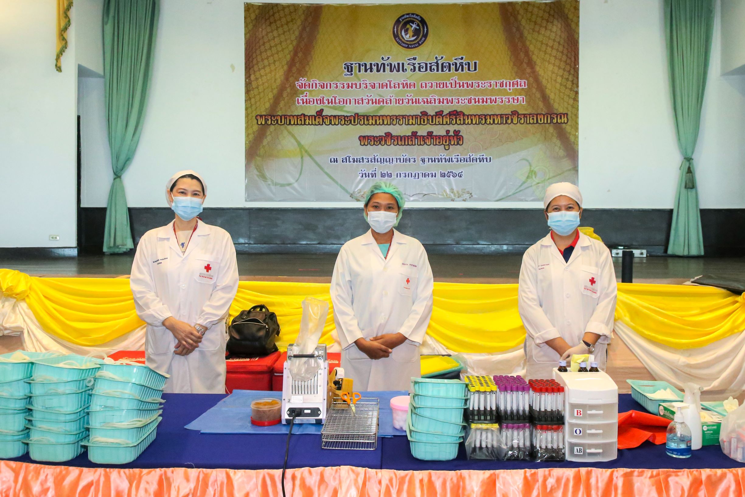 วันที่ 22 กรกฎาคม 2564 พลเรือโท อนุชาติ อินทรเสน ผู้บัญชาการฐานทัพเรือสัตหีบ ตรวจเยี่ยมให้กำลังใจแก่กำลังพลที่เข้าร่วมบริจาคโลหิต ในกิจกรรม “กองทัพเรือ เพื่อประชาชน ร่วมใจต้านภัย COVID – 19” เพื่อถวายเป็นพระราชกุศล เนื่องในโอกาสวันเฉลิมพระชนมพรรษา พระบาทสมเด็จพระเจ้าอยู่หัว 28 กรกฎาคม 2564 อีกทั้งเพื่อเป็นการสำรองปริมาณโลหิตให้แก่สภากาชาดไทย ในสถานการณ์การแพร่ระบาดของโรคติดเชื้อไวรัสโคโรนา 2019 (COVID – 19) ที่ทวีความรุนแรงขึ้น ทั้งนี้การจัดกิจกรรมได้แบ่งกำลังพลเป็นชุดเข้ารับบริจาคโลหิต เพื่อให้เป็นไปตามมาตรการที่คณะกรรมการบริหารสถานการณ์การแพร่ระบาดของโรคติดเชื้อไวรัสโคโรนา 2019 (COVID – 19) จังหวัดชลบุรีกำหนดโดยเคร่งครัด โดยมีภาคบริการโลหิตแห่งชาติที่ 3 จังหวัดชลบุรี สภากาชาดไทยมาดำเนินการรับบริจาค ซึ่งมีกำลังพลฐานทัพเรือสัตหีบ เข้าร่วมบริจาคโลหิตได้ปริมาณโลหิต 27,450 มิลลิลิตร