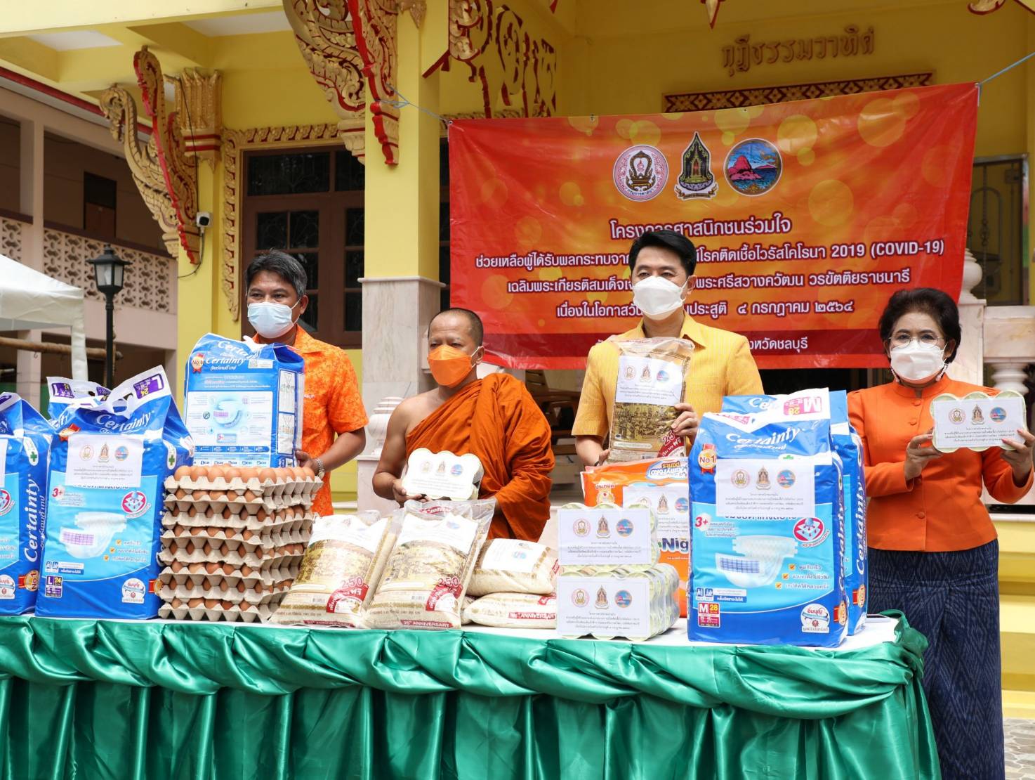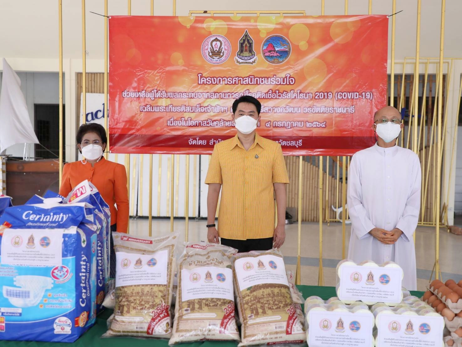 ในโครงการของสำนักงานวัฒนธรรม จ.ชลบุรี “ศาสนิกชนร่วมใจ ช่วยเหลือผู้ได้รับผลกระทบจากสถานการณ์โรคติดเชื้อไวรัสโคโรนา 2019 (COVID-19) เฉลิมพระเกียรติสมเด็จเจ้าฟ้าฯ กรมพระศรีสวางควัฒน วรขัตติยราชนารี เนื่องในโอกาสวันคล้ายวันประสูติ 4 กรกฎาคม 2564”ตามนโยบาย นายอิทธิพล คุณปลื้ม รัฐมนตรีว่าการกระทรวงวัฒนธรรม
