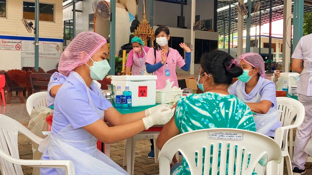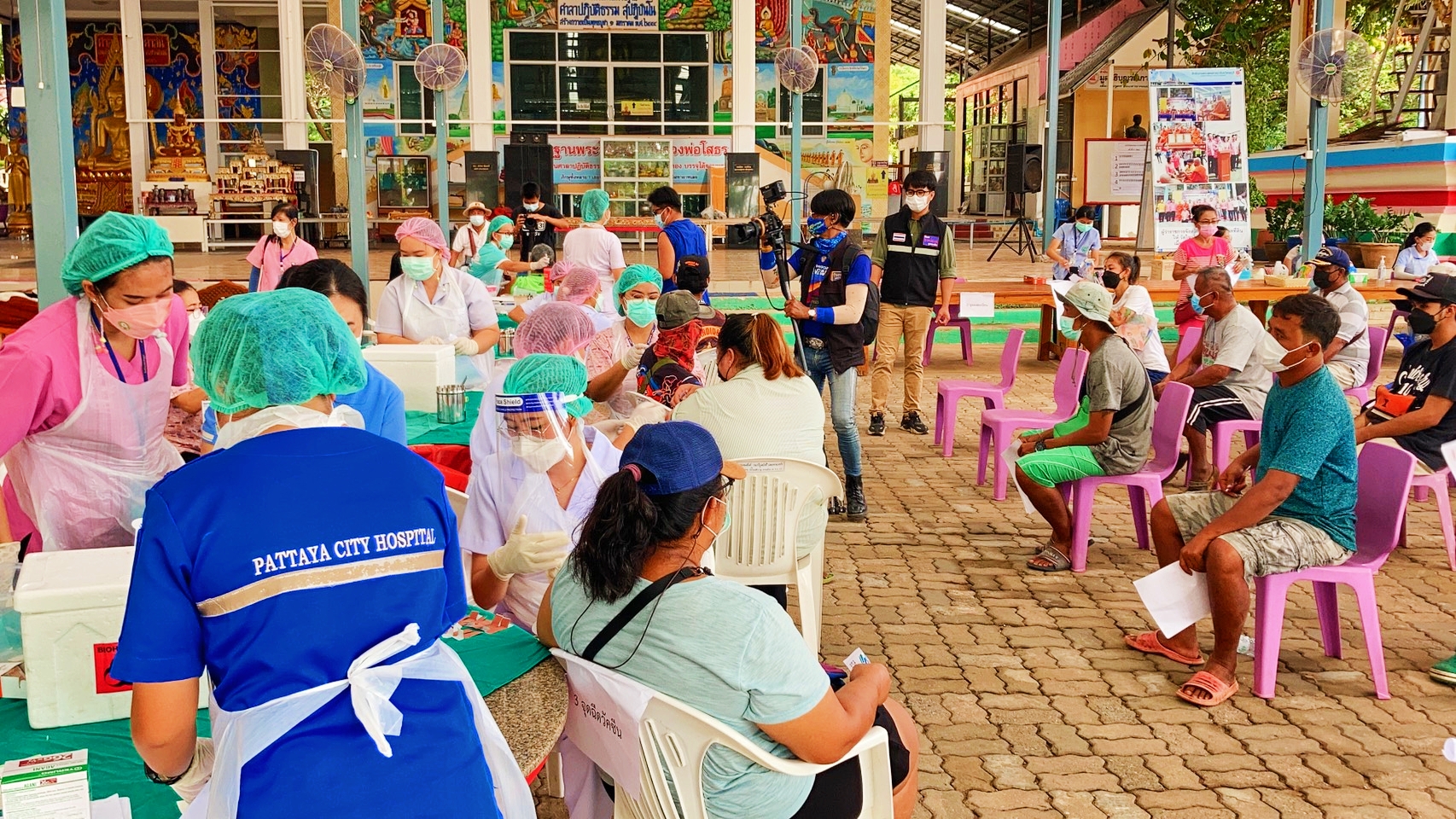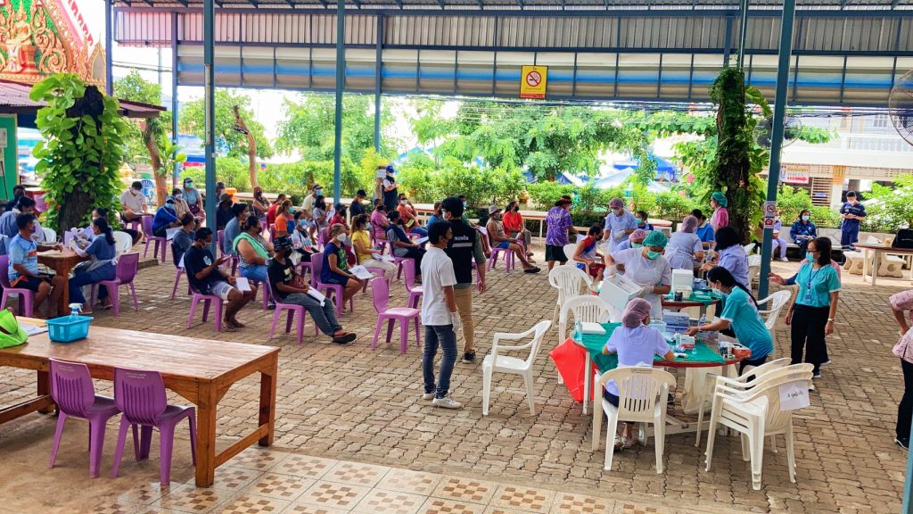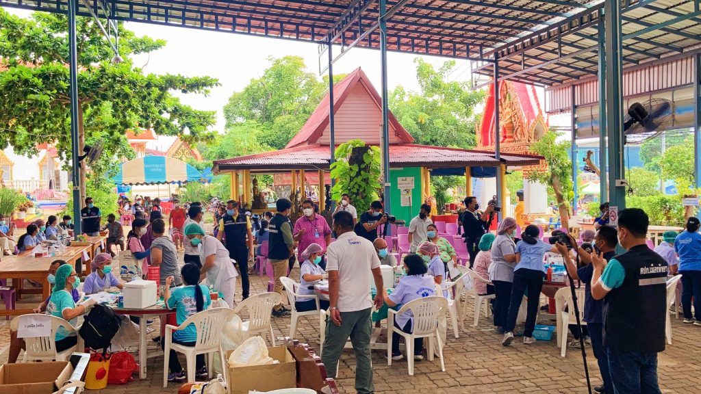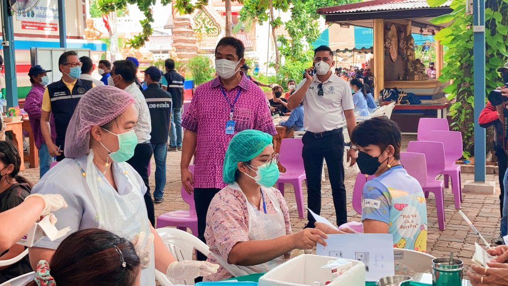 นายกเมืองพัทยานั่งเรือข้ามฟากไปตรวจเยี่ยมการให้บริการวัคซีนแอสตร้าซิเนก้า บูสเตอร์ช็อต โดสที่ 3 ให้ประชาชนที่ได้รับวัคซีนซิโนแวค 2 โดส เดินหน้าหมู่บ้านสีฟ้า หมู่บ้านนี้ไม่มีโควิด-19