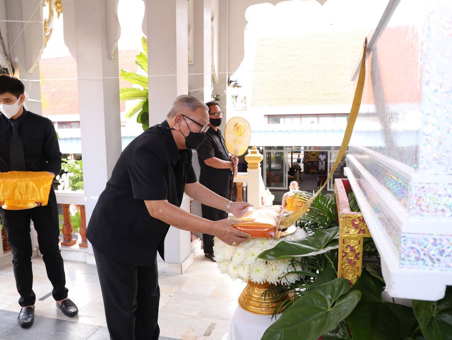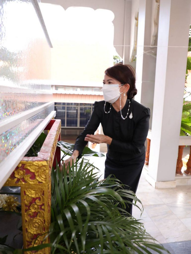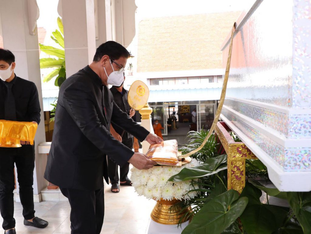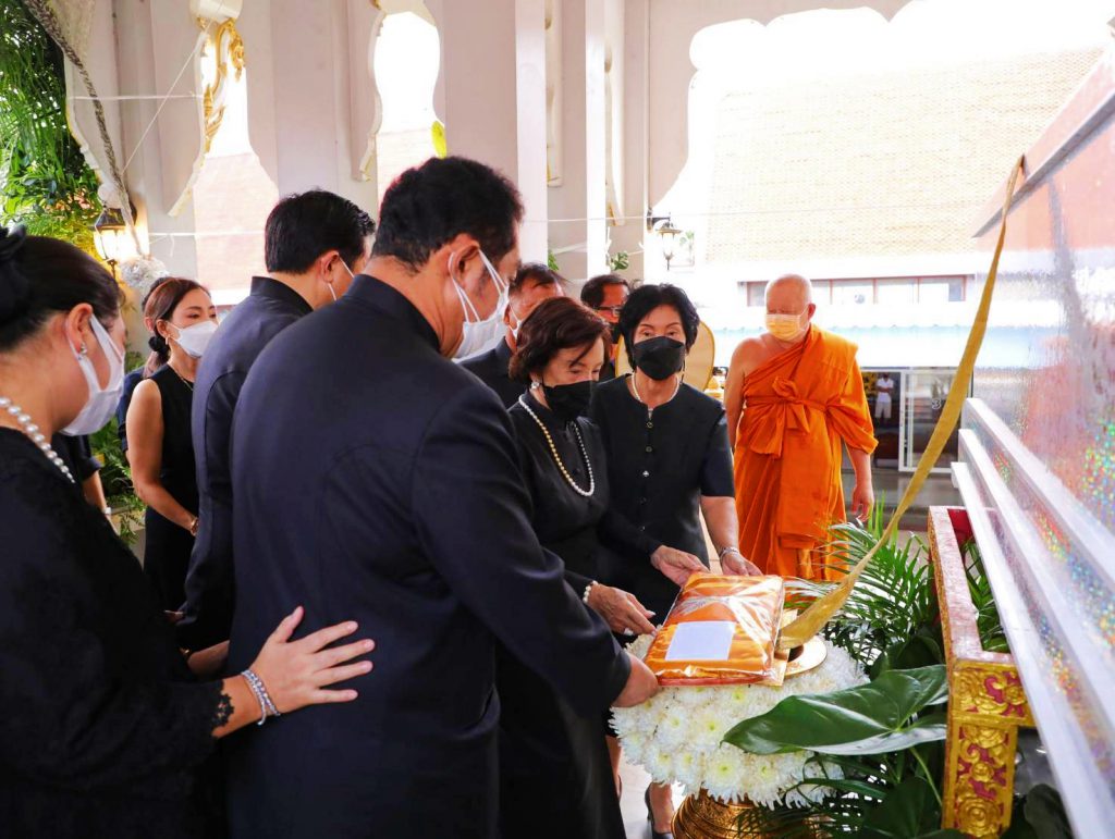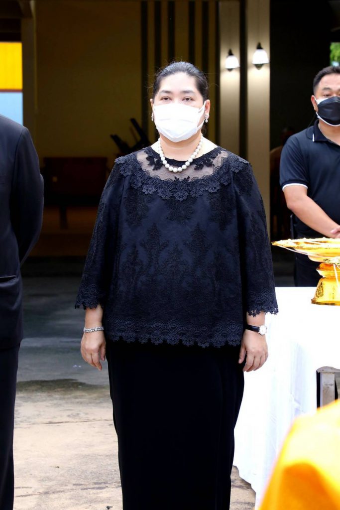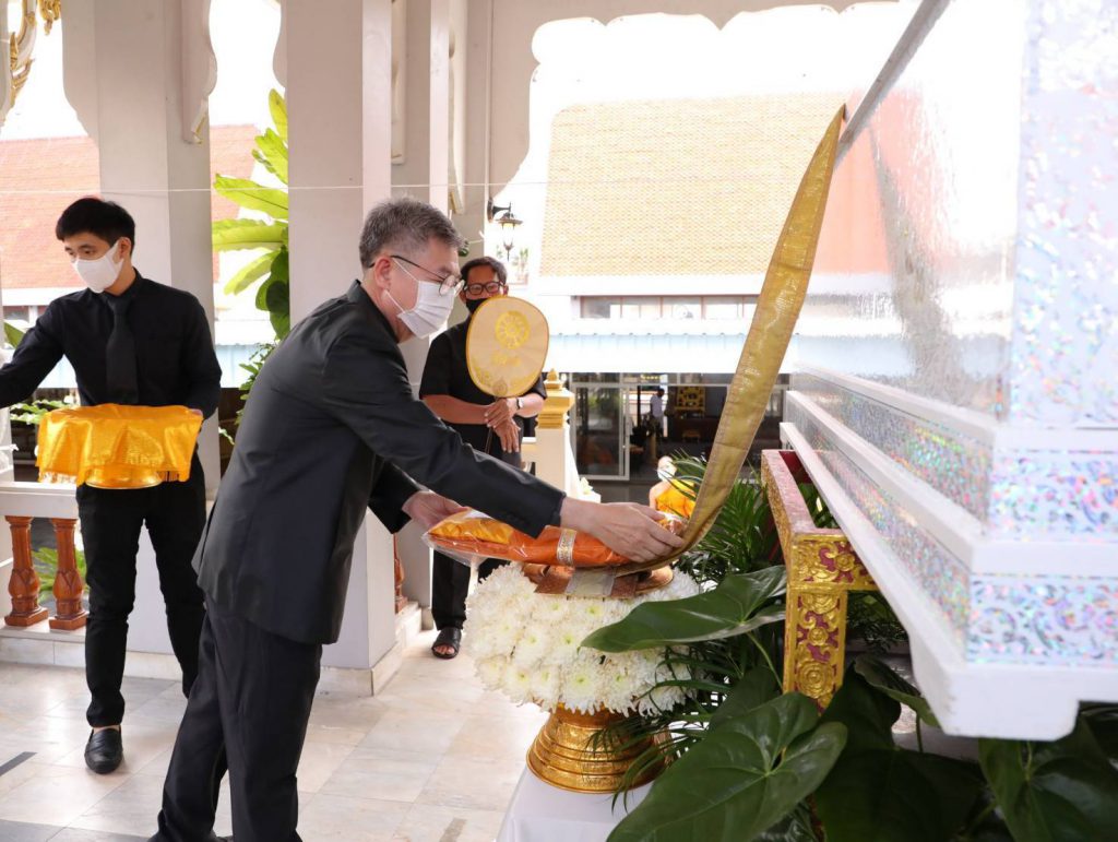 โดยมี นางสุภาพร เทียนไชย นายกเหล่ากาชาด จังหวัดชลบุรี เป็นประธานฝ่ายฆราวาสทอดผ้ามหาบังสุกุลและเป็นประธานในพิธี พร้อม แขกผู้มีเกียรติร่วมแสดงความไว้อาลัยหลายท่าน อาทิ นายปรเมศวร์ งามพิเชษฐ์ ผู้ช่วยรัฐมนตรีกระทรวงวัฒนธรรม, นายสุรสิทธิ์ นิธิวุฒิวรรักษ์ ส.ส.ระบบบัญขีรายชื่อ พรรคพลังประชารัฐ, นายวิวัฒน์ มหาผลศิริกุล รองผู้ว่าราชการจังหวัดชลบุรี, นายเรวัต ผลลูกอินทร์ รองนายก อบจ.ชลบุรีพร้อมคณะสมาชิก อบจ.ชลบุรี, นายพันธุ์ศักดิ์ เกตุวัตถา อดีต ส.ส.ชลบุรี, นักการเมืองท้องถิ่น ผู้นำท้องถิ่น ข้าราชการตำรวจ ญาติพี่น้อง ร่วมงานพิธีอย่างพร้อมเพรียง……..