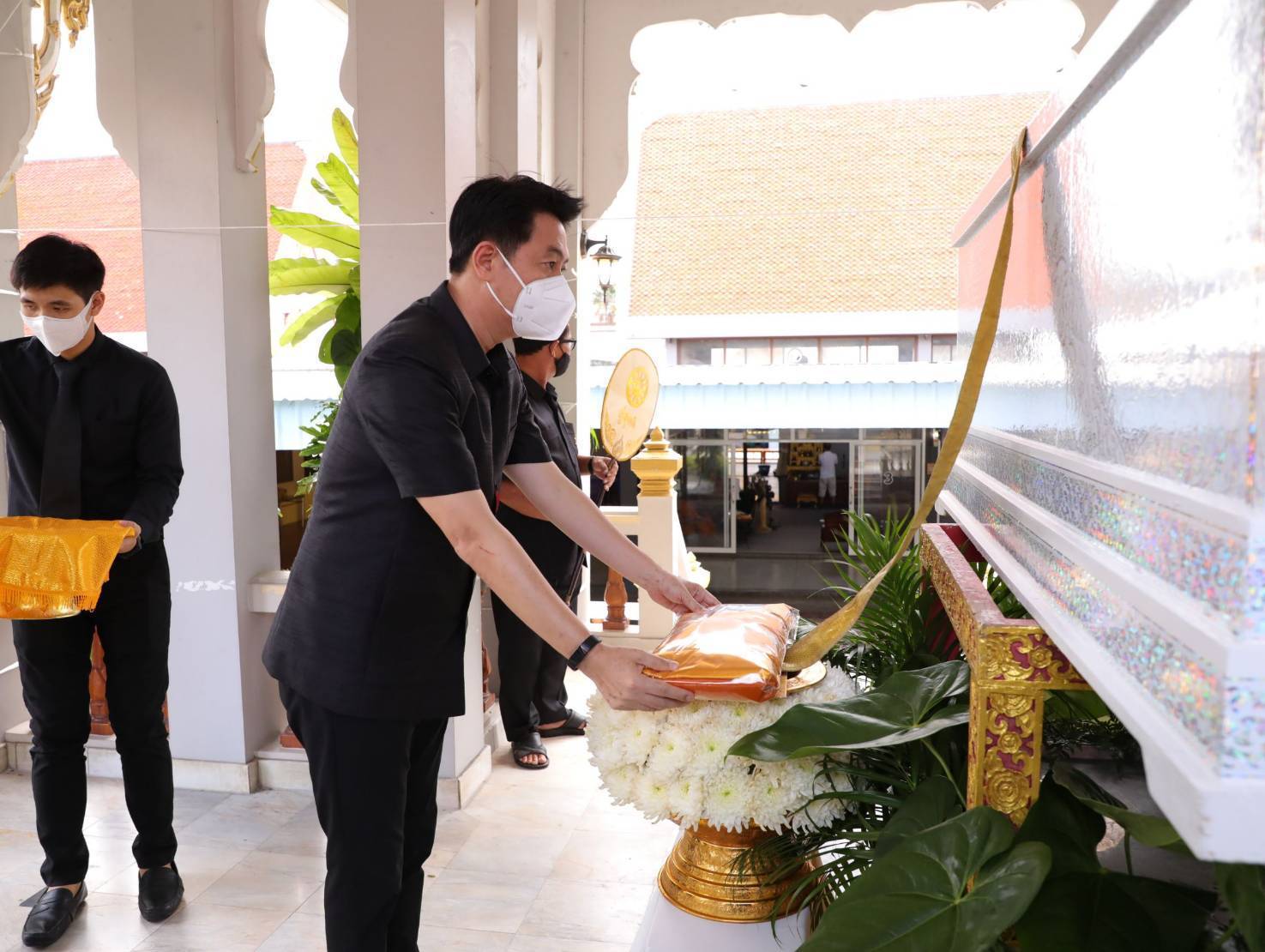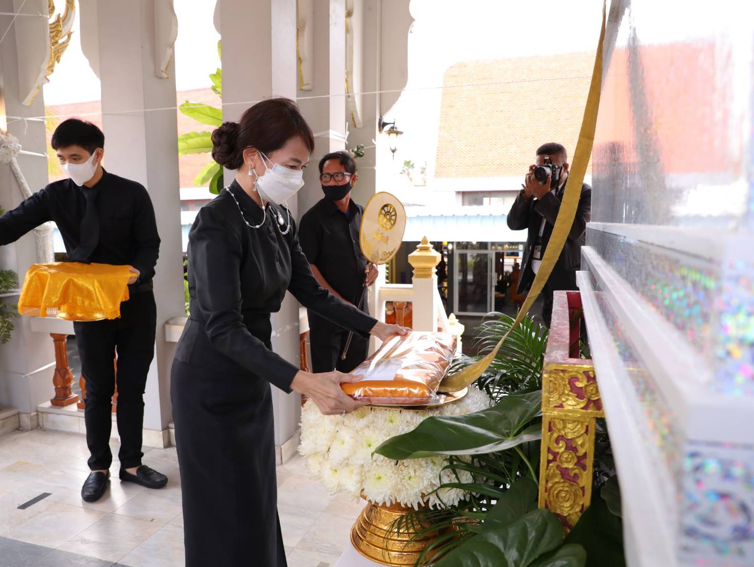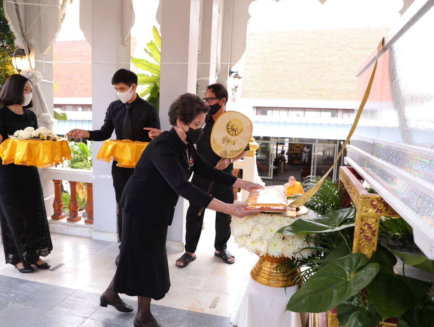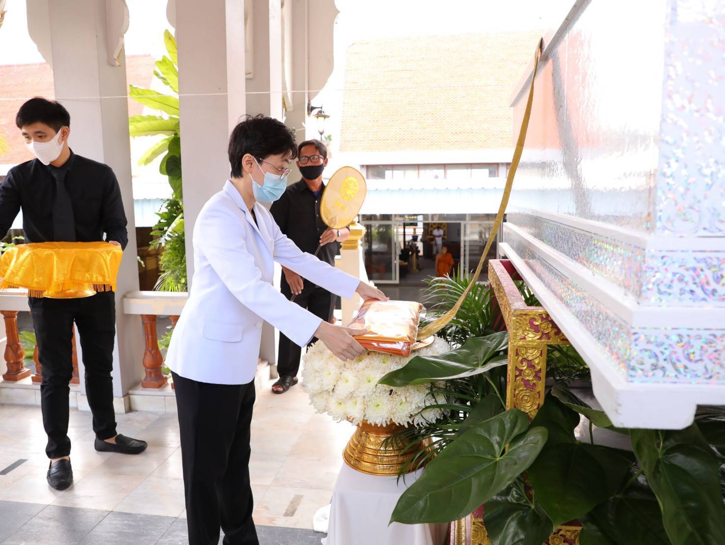 โดยมี นางสุภาพร เทียนไชย นายกเหล่ากาชาด จังหวัดชลบุรี เป็นประธานฝ่ายฆราวาสทอดผ้ามหาบังสุกุลและเป็นประธานในพิธี พร้อม แขกผู้มีเกียรติร่วมแสดงความไว้อาลัยหลายท่าน อาทิ นายปรเมศวร์ งามพิเชษฐ์ ผู้ช่วยรัฐมนตรีกระทรวงวัฒนธรรม, นายสุรสิทธิ์ นิธิวุฒิวรรักษ์ ส.ส.ระบบบัญขีรายชื่อ พรรคพลังประชารัฐ, นายวิวัฒน์ มหาผลศิริกุล รองผู้ว่าราชการจังหวัดชลบุรี, นายเรวัต ผลลูกอินทร์ รองนายก อบจ.ชลบุรีพร้อมคณะสมาชิก อบจ.ชลบุรี, นายพันธุ์ศักดิ์ เกตุวัตถา อดีต ส.ส.ชลบุรี, นักการเมืองท้องถิ่น ผู้นำท้องถิ่น ข้าราชการตำรวจ ญาติพี่น้อง ร่วมงานพิธีอย่างพร้อมเพรียง……..