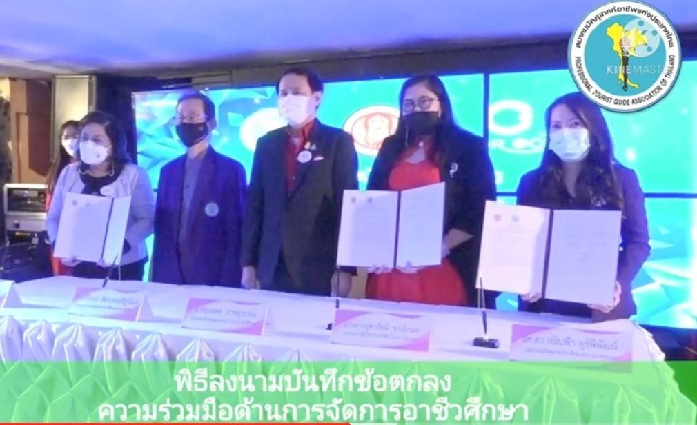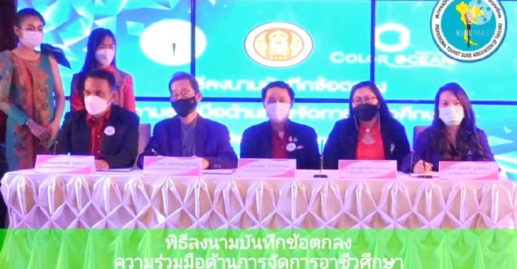 เมื่อวันที่ 13 พฤศจิกายน 2564 บนเรือ The Chaophraya Cruise ซึ่งเป็นเรือล่องแม่น้ำเจ้าพระยาชมวิว สุดหรู มีการจัดการลงนามบันทึกความเข้าใจ (MOU) 3 ฝ่าย ที่จะส่งผลต่อการผลิตบุคลากรป้อนตลาดท่องเที่ยวในอนาคตอันใกล้ คือ สำนักงานคณะกรรมการการอาชีวศึกษา โดยมี นายมณฑล ภาคสุวรรณ์ รองเลขาธิการคณะกรรมการการอาชีวศึกษา สมาคมมัคคุเทศก์อาชีพแห่งประเทศไทย โดย นายวิโรจน์ สิตประเสริฐนันท์ นายกสมาคม และ บริษัท Color Ocean จำกัด ซึ่งมีนางสาว จุฑารัตน์ ขาวโกมล ประธานกรรมการบริษัท ร่วมกันลงนามซึ่งในการบันทึกความเข้าใจในครั้งนี้เป็นการทำข้อตกลงร่วมกันที่จะจัดการผลิตกำลังบุคลากรด้านอาชีวศึกษา ให้มีความรู้ความสามารถในวิชาชีพที่เกี่ยวข้องกับการบริการและการท่องเที่ยวโดยการอาชีวศึกษาจะได้ รับการสนับสนุนด้านความรู้ประสบการณ์จริงจาก บุคลากรทางด้านมัคคุเทศก์ ตลอดจนทักษะภาษาต่าง ๆ ที่ใช้งานจริงจากมัคคุเทศก์ที่มากประสบการณ์ ตลอดจนมีสถานที่ฝึกงานจากสถานประกอบการจริง โดย บริษัท Color Ocean จำกัด ซึ่งมีกิจการบริการนักท่องเที่ยวอย่างครบครัน เช่นห้องพัก โรงแรม ร้านอาหาร เรือสำราญล่องแม่น้ำเจ้าพระยา แพตกหมึก ตกหมึกกลางอ่าวพัทยา มีวิวทิวทัศน์สวยงาม และโรงแรมชั้นนำในแหล่งท่องเที่ยวยอดนิยมของประเทศไทย