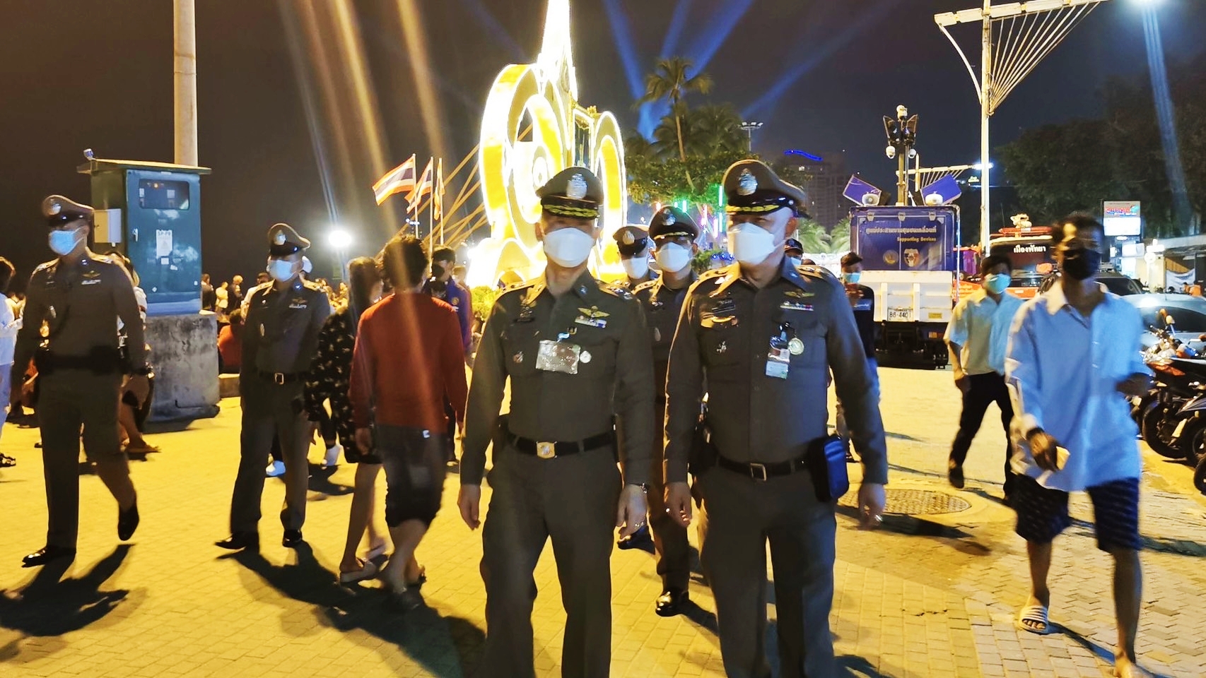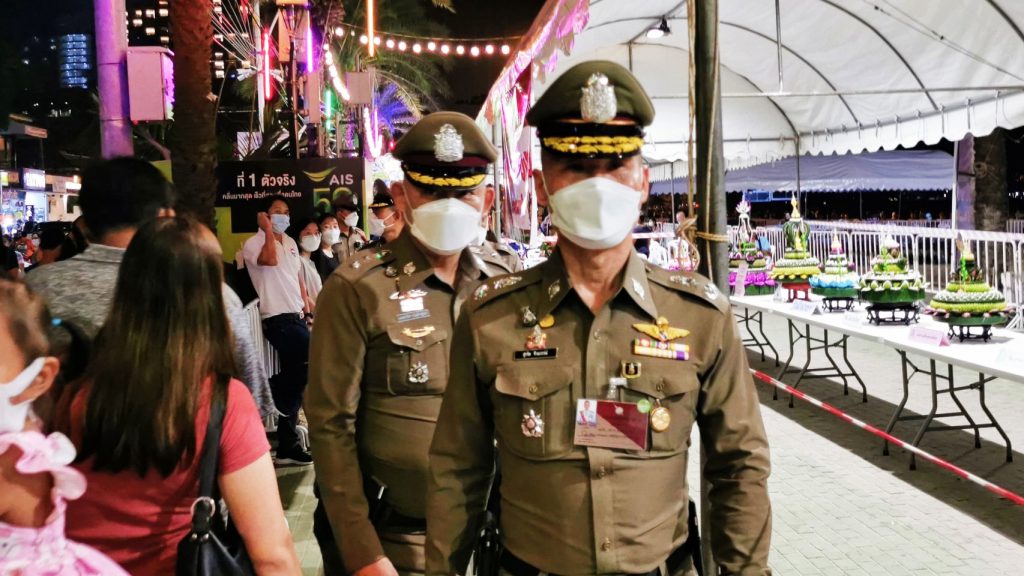 มีรายงานว่า ช่วงดึกของคืนวันที่ 19 พ.ย.64 ซึ่งตรงกับการจัดงานเทศกาลวันลอยกระทงเมืองพัทยา ประจำปี 2564 ที่มีกิจกรรมหลักบริเวณชายหาดพัทยากลาง เมืองพัทยา จ.ชลบุรี พล.ต.ต.สุรจิต ชิงนวรรณ์ รอง ผบช.ภ.2 พร้อมด้วย พ.ต.อ.เมฒาวิศ ประดิษฐ์ผล รอง ผบก.จว.ชลบุรี และกำลังเจ้าหน้าที่ตำรวจ ได้ลงพื้นที่เดินเท้าตรวจตรารอบบริเวณการจัดงาน