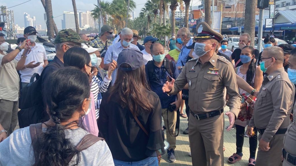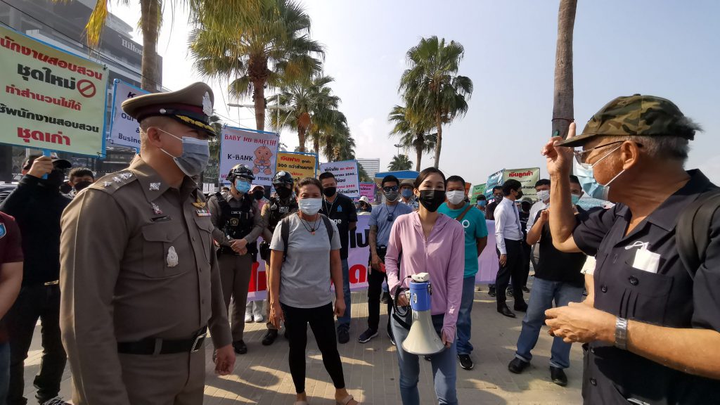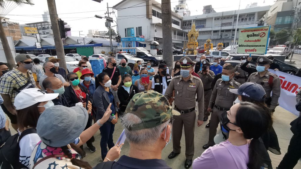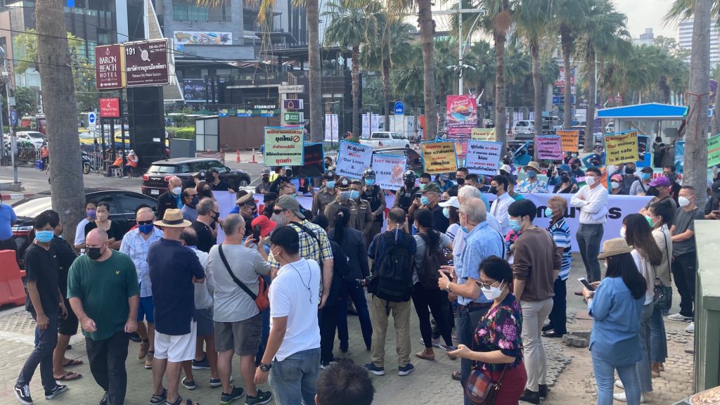 มีรายงานว่าวันนี้ (24 ธ.ค.) ที่บริเวณถนนริมชายหาดพัทยากลาง หน้า สภ.เมืองพัทยา จ.ชลบุรี มีกลุ่มนักธุรกิจทั้งชาวไทยและต่างชาติรวมกว่า 50 คน ยืนถือป้าย พร้อมร่วมตะโกนประท้วงขอความเป็นธรรมกับเจ้าหน้าที่ตำรวจ โดยระบุว่าถูกพนักงานธนาคารชื่อดังแห่งหนึ่งหลอกโกงเงินไปจำนวน 200 กว่าล้านบาท ซึ่งกรณีดังกล่าวเกิดขึ้นมาเป็นเวลานานแล้ว แต่พบว่าทางธนาคารยังไม่เข้ามารับผิดชอบในการชดใช้ค่าเสียหายและคดีความที่ฟ้องร้องไปทางเจ้าหน้าที่ตำรวจยังไม่มีความคืบหน้าแต่อย่างใด