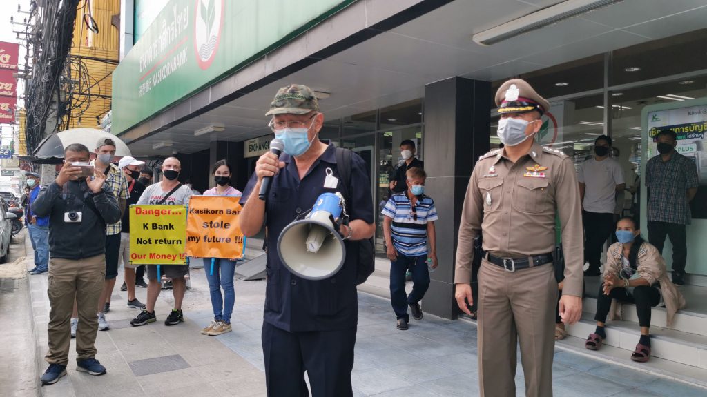 ส่วนการเดินทางมาประท้วงและเข้าพบเจ้าหน้าที่ตำรวจที่ สภ.เมืองพัทยา ในวันนี้ ก็เพื่อเป็นการประกาศให้สังคมได้รับทราบถึงเหตุการณ์ที่เกิดขึ้น รวมทั้งร้องขอให้ทางผู้กำกับการ สภ.เมืองพัทยา ทำการปรับเปลี่ยนคณะเจ้าพนักงานสอบสวนชุดใหม่ เนื่องจากคดีดังกล่าวมีความล่าช้า ทำให้ผู้เสียหายได้รับความเดือดร้อนเป็นอย่างมาก อย่างไรก็ตามหากไม่ได้รับความเป็นธรรมใดๆในวันที่ 11 มกราคม 2565 กลุ่มผู้เสียทั้งหมดจะร่วมกันเดินทางไปร้องเรียนที่สำนักงานตำรวจแห่งชาติ และธนาคารกสิกรไทย สาขาใหญ่ เพื่อขอให้มีการเร่งรัดติดตามความคืบหน้าของคดีและมีการชดใช้เงินแก่ผู้เสียหายต่อไป…….