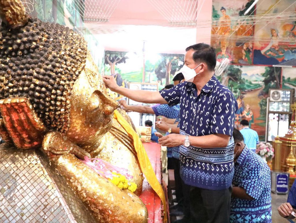 นายก อบจ.ชลบุรี เป็นประธานพิธีปิดทองหลวงพ่อโต วัดสุทธาวาส หนองปรือ