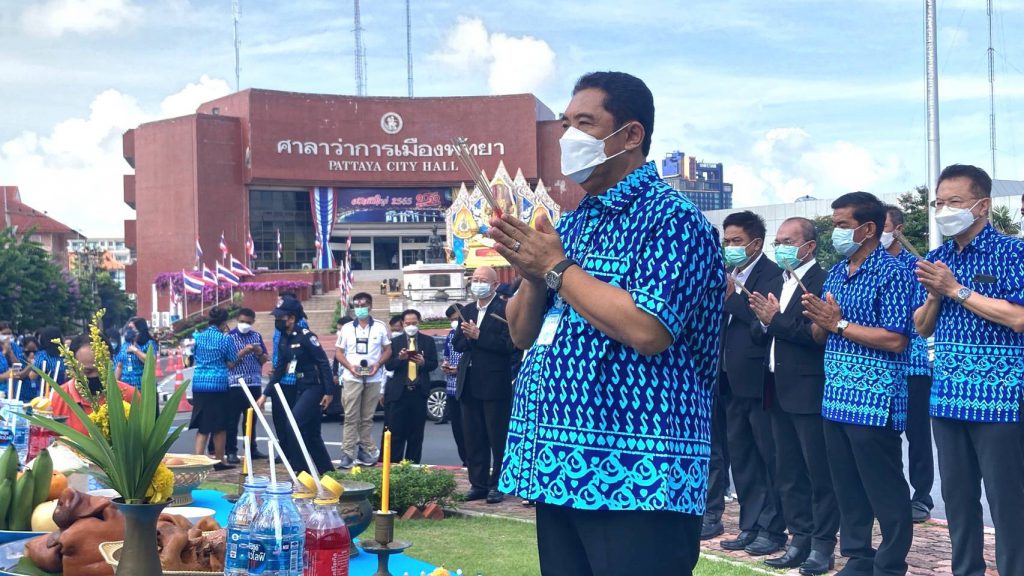 ทั้งนี้ นายสนธยา คุณปลื้ม นายกเมืองพัทยา ได้นำคณะร่วมกันจุดธูปเทียน วางพวงมาลัยดอกไม้ต่อหน้าศาลพระภูมิเจ้าที่ พระแม่ธรณี พระพิฆเนศ และพระบรมราชานุสาวรีย์สมเด็จพระเจ้าตากสินมหาราช ตามลำดับพิธีการ
