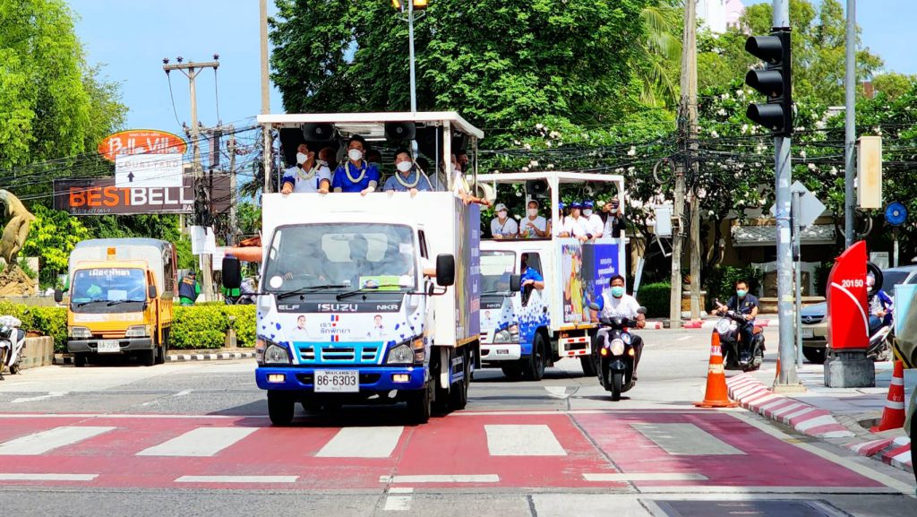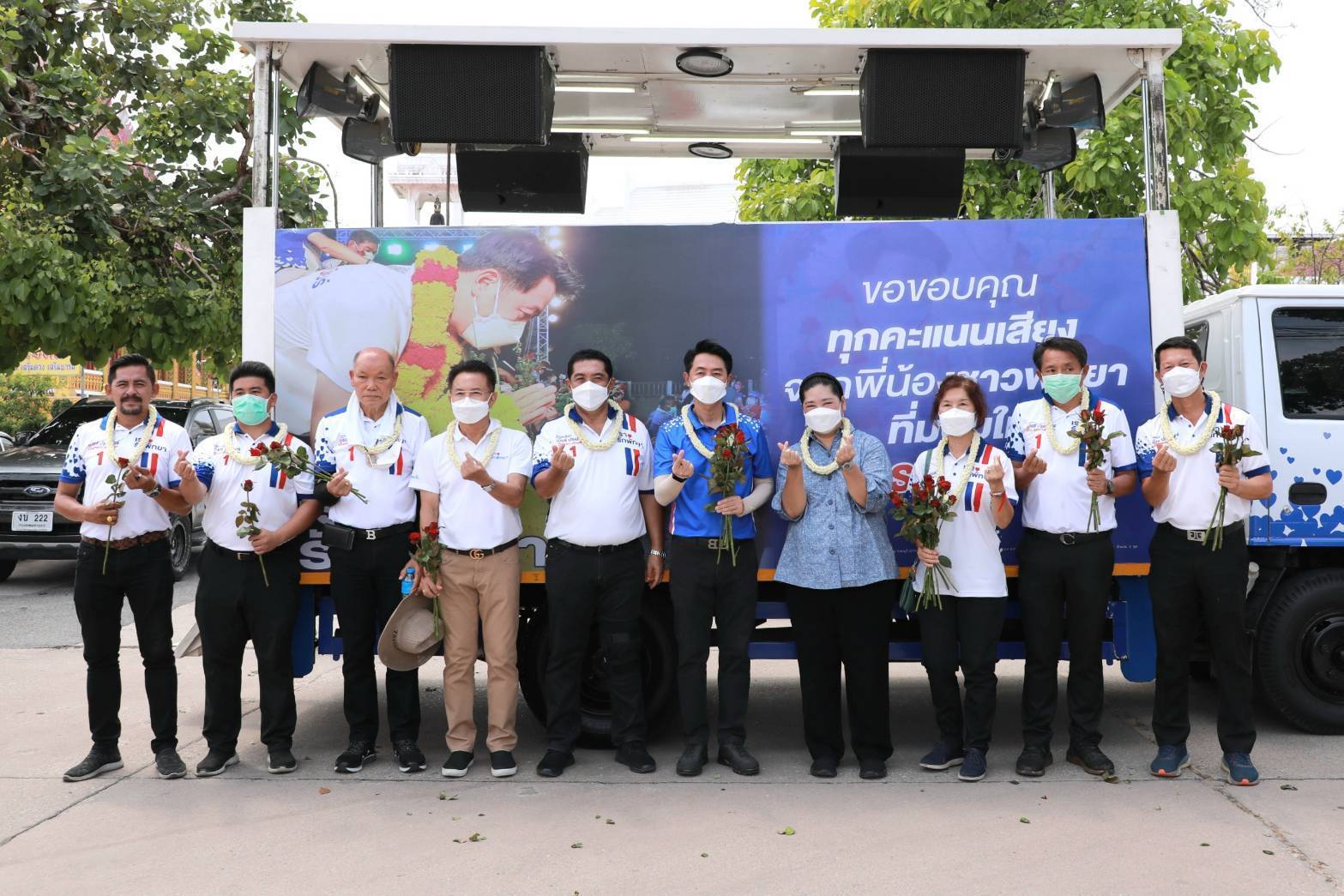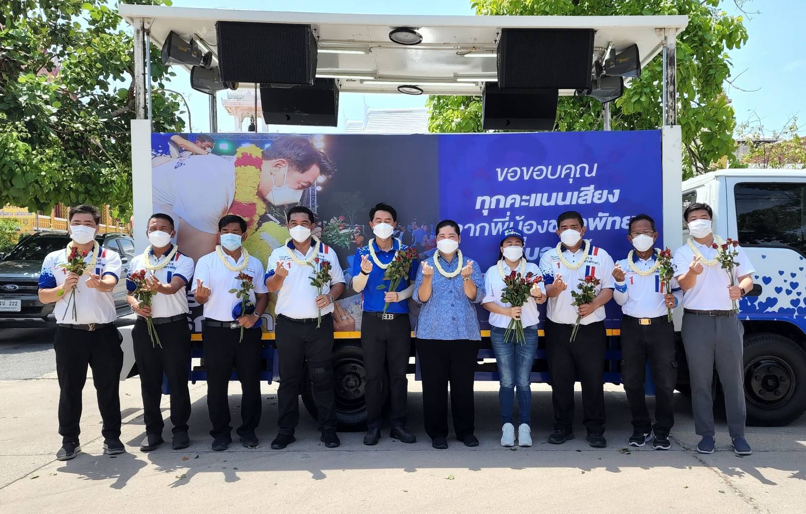 ทั้งนี้ ขบวนรถแห่ได้เริ่มขอบคุณประชาชนจากพื้นที่เขตเลือกตั้งที่ 1 บริเวณหน้าร้านปลาทองซีฟู้ด นาเกลือ ก่อนเคลื่อนขบวนไปยังชุมชนชนต่างๆ ก่อนไปสิ้นสุดที่วัดหนองใหญ่ จากนั้นได้เคลื่อนขบวนรถแห่ไปขอบคุณประชาชนพื้นที่เขตเลือกตั้งที่ 2