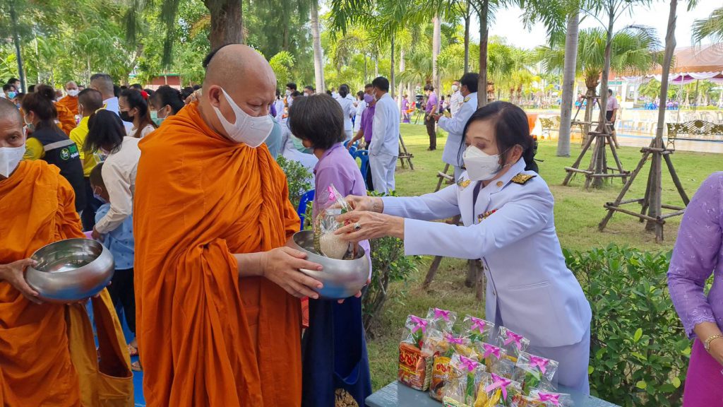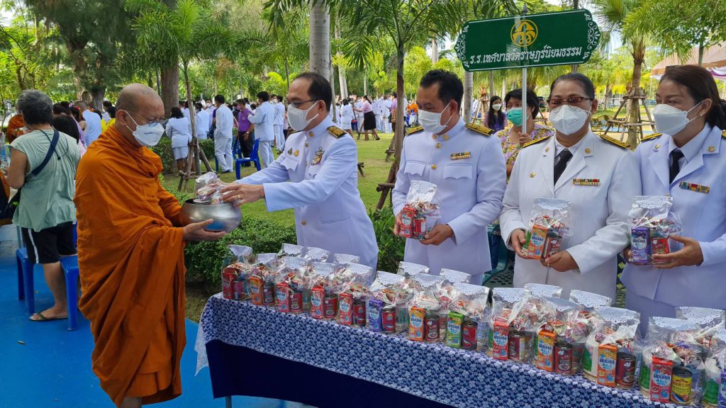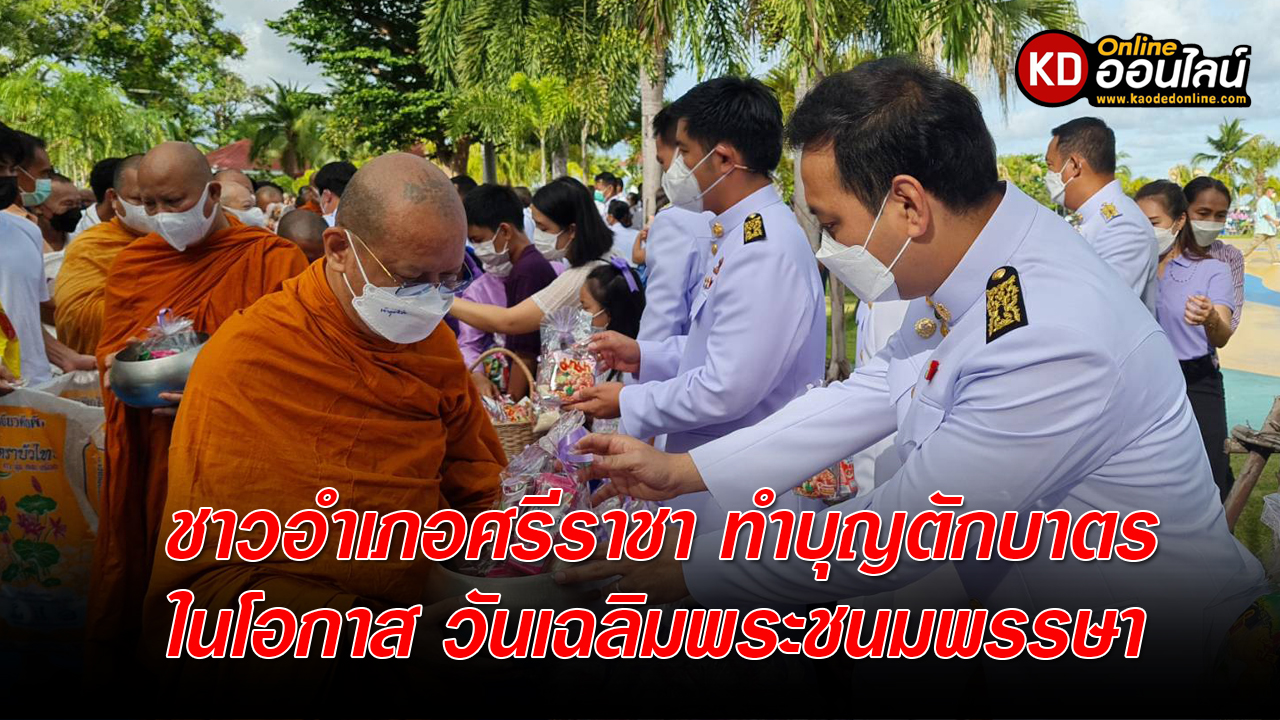 ชาวอำเภอศรีราชา ร่วมกับเทศบาลเมืองศรีราชาและพี่น้องชาวชุมชนตักบาตรข้าวสารอาหารแห้งในโอกาส วันเฉลิมพระชนมพรรษา สมเด็จพระนางเจ้าสุทิดา พัชรสุธาพิมลลักษณ พระบรมราชินี