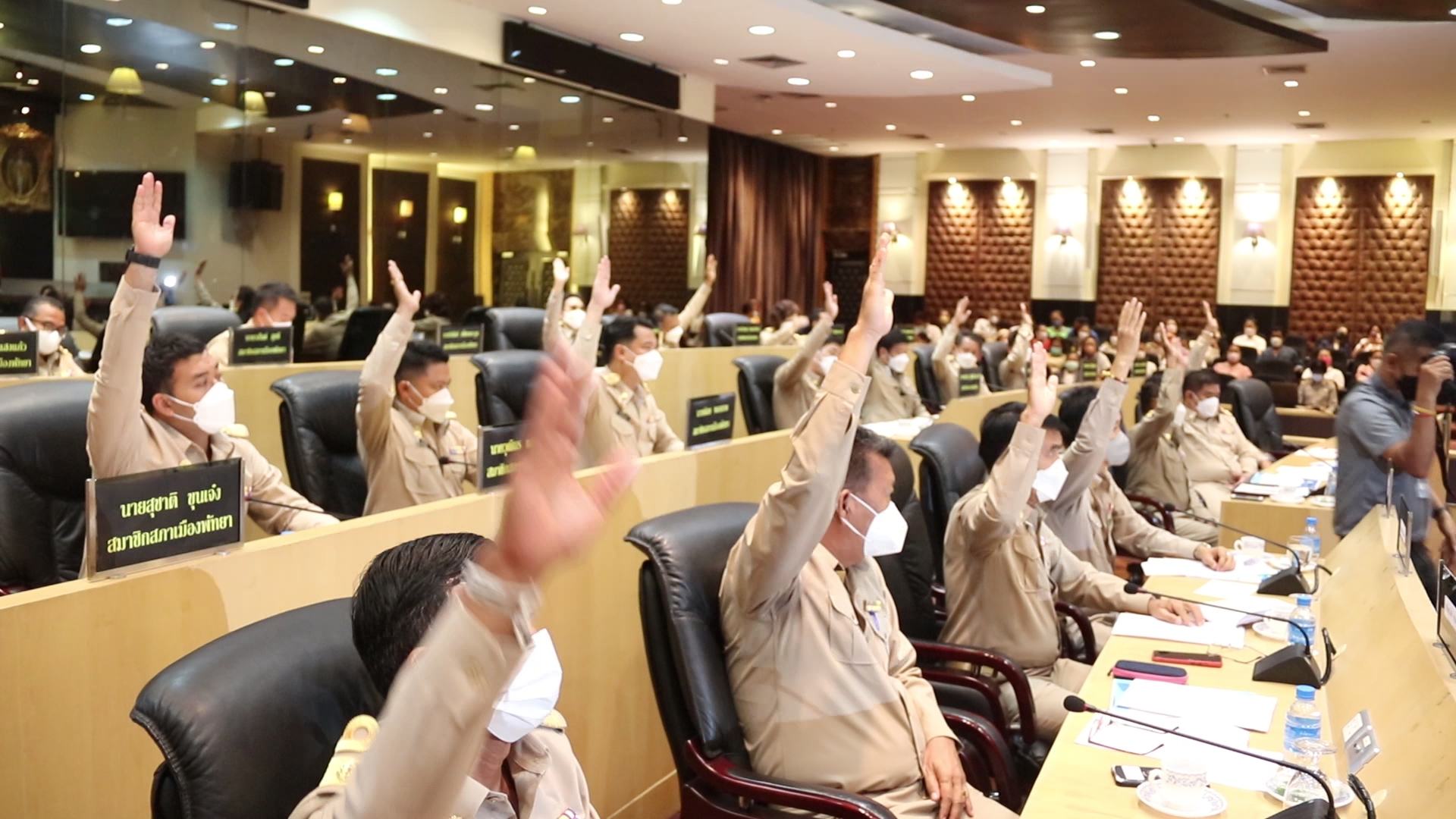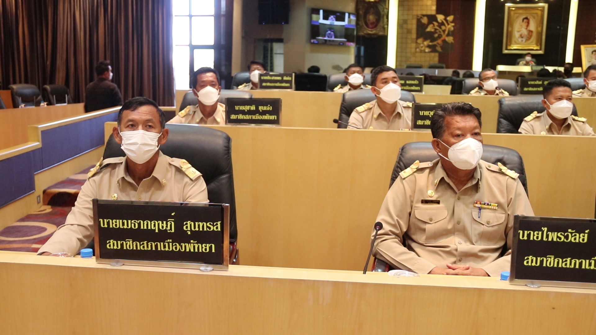 ที่ ห้องประชุมสภา ศาลาว่าการเมืองพัทยา จ.ชลบุรี นายภัครธรณ์ เทียนไชย ผู้ว่าราชการจังหวัดชลบุรี เป็นประธานในประดับเครื่องหมายอินทรธนูให้กับสมาชิกสภาเมืองทั้ง 24 คน พร้อม เปิดประชุมสภาเมืองพัทยา ครั้งแรก เพื่อให้สมาชิกสภาเมืองพัทยา ได้ปฏิญาณตนก่อนเริ่มการปฏิบัติหน้าที่  โดยจะต้องยึดหลักการปฏิบัติหน้าที่ตามรัฐธรรมนูญแห่งราชอาณาจักรไทยอย่างซื่อสัตย์และเพื่อประโยชน์ของประชาชน
