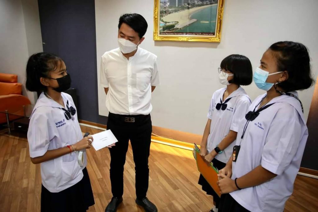 ในการนี้ ทางคุณครูณัฏฐรัฐ จันทะโลก (ครูผู้ควบคุม) ได้นำน้องๆ ที่ได้รับรางวัลรองชนะเลิศอันดับ 1 การประกวดโครงงานฯ ดังกล่าว ประกอบด้วย ด.ญ.เกสรา หงษ์ทอง ด.ญ.เปรมิกา เพ็ชรมณี และ ด.ญ.วิชญาดา เบาบาง เข้าพบนายกเมืองพัทยา เพื่อขอสัมภาษณ์ด้านการท่องเที่ยวเชิงนิเวศน์ของเมืองพัทยา เพื่อนำข้อมูลไปประกอบโครงงานฯ ที่จะนำไปประกวดในระดับประเทศต่อไป