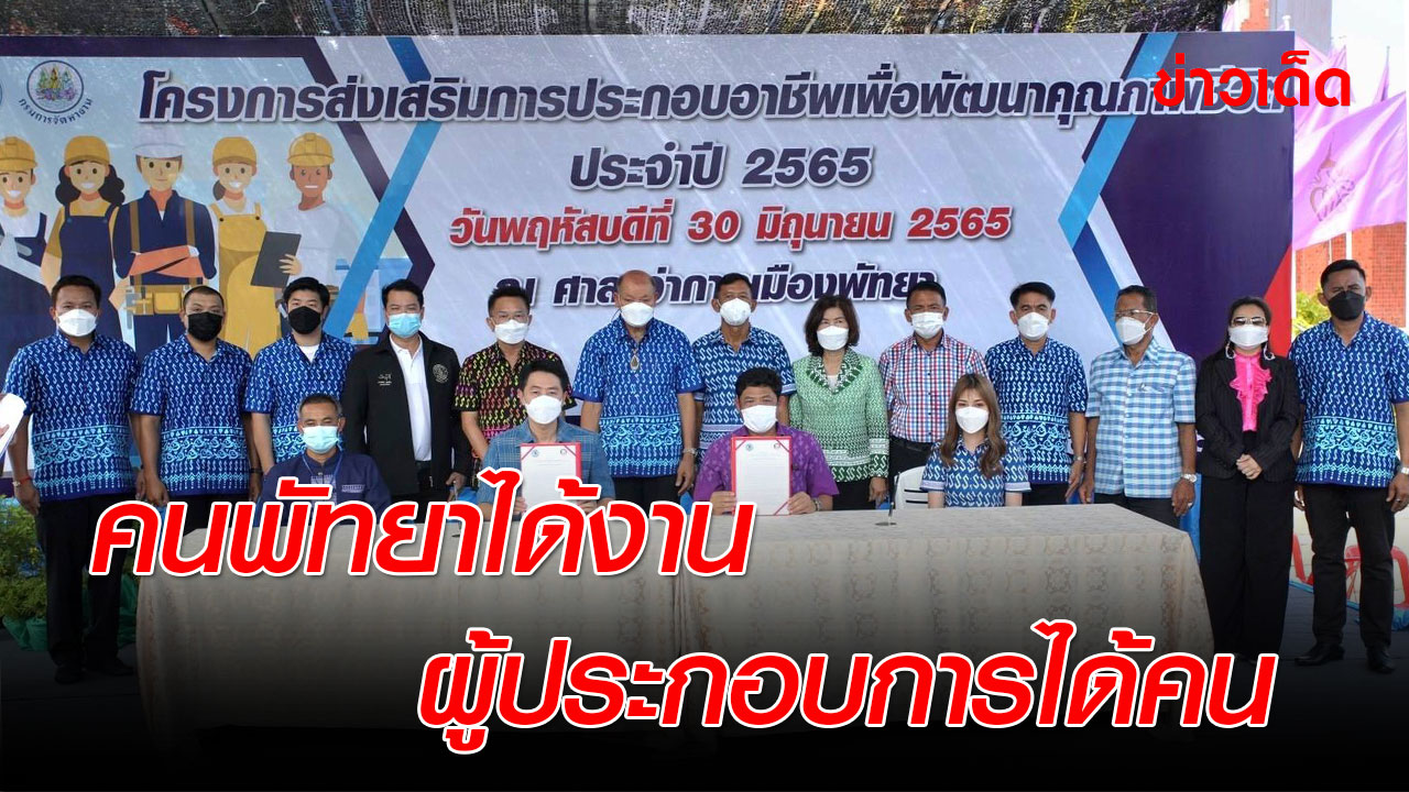 เมืองพัทยา จึงได้จัดทำโครงการส่งเสริมการประกอบอาชีพเพื่อพัฒนาคุณภาพชีวิต ประจำปี 2565 โดยทำบันทึกตกลงความร่วมมือกับสำนักงานจัดหางานจังหวัดชลบุรี และบูรณาการร่วมกับภาครัฐและเอกชนเพื่อร่วมกันช่วยเหลือและส่งเสริมให้ประชาชนมีอาชีพ มีรายได้ มีทางเลือกในการประกอบอาชีพและมีทักษะความสามารถในการประกอบอาชีพได้อย่างมั่นคงและสนับสนุนให้ประชาชนเข้าถึงการให้บริการช่วยเหลือด้านอาชีพนจะส่งผลให้สามารถพึ่งพาตนเองได้มีภูมิคุ้มกัน มีคุณภาพชีวิตที่ดีตามแนวทางปรัชญาเศรษฐกิจพอเพียง สามารถดำงชีวิตอยู่ได้อย่างมั่นคงและปลอดภัยภายใต้ความเปลี่ยนแปลงของกระแสโลก
