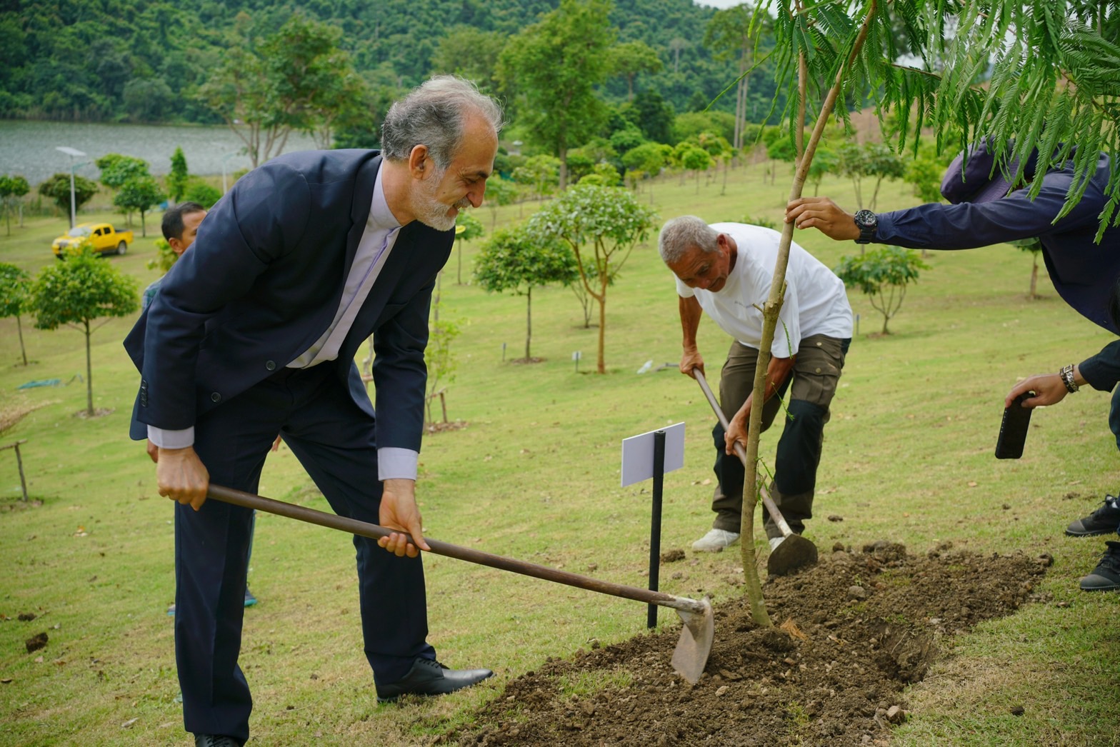 โอกาสนี้นาย Seyed Reza Nobakhti เอกอัครราชทูตสาธารณรัฐอิสลามอิหร่านประจำประเทศไทย พร้อมคณะยังให้เกียรติปลูกต้นไม้บริเวณ“สวนรุกขชาติ”เชิงเขาบันไดกฤษ ตามโครงการ“ปลูกป่าเพื่อการอนุรักษ์”ทั้งนี้ได้ร่วมกันปลูกต้นมะขามป้อมยักษ์จำนวน 1 ต้น พร้อมถ่ายรูปร่วมกัน