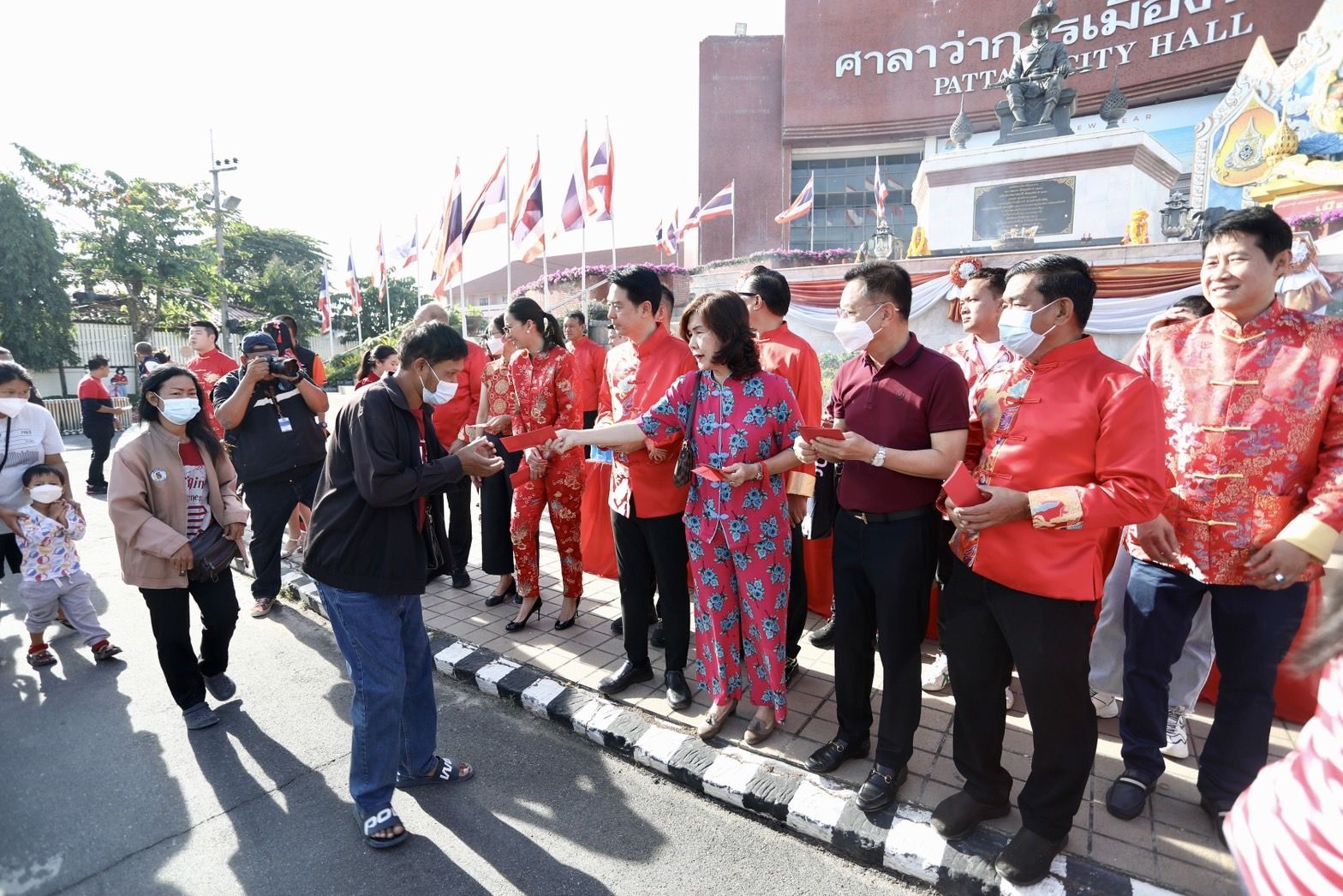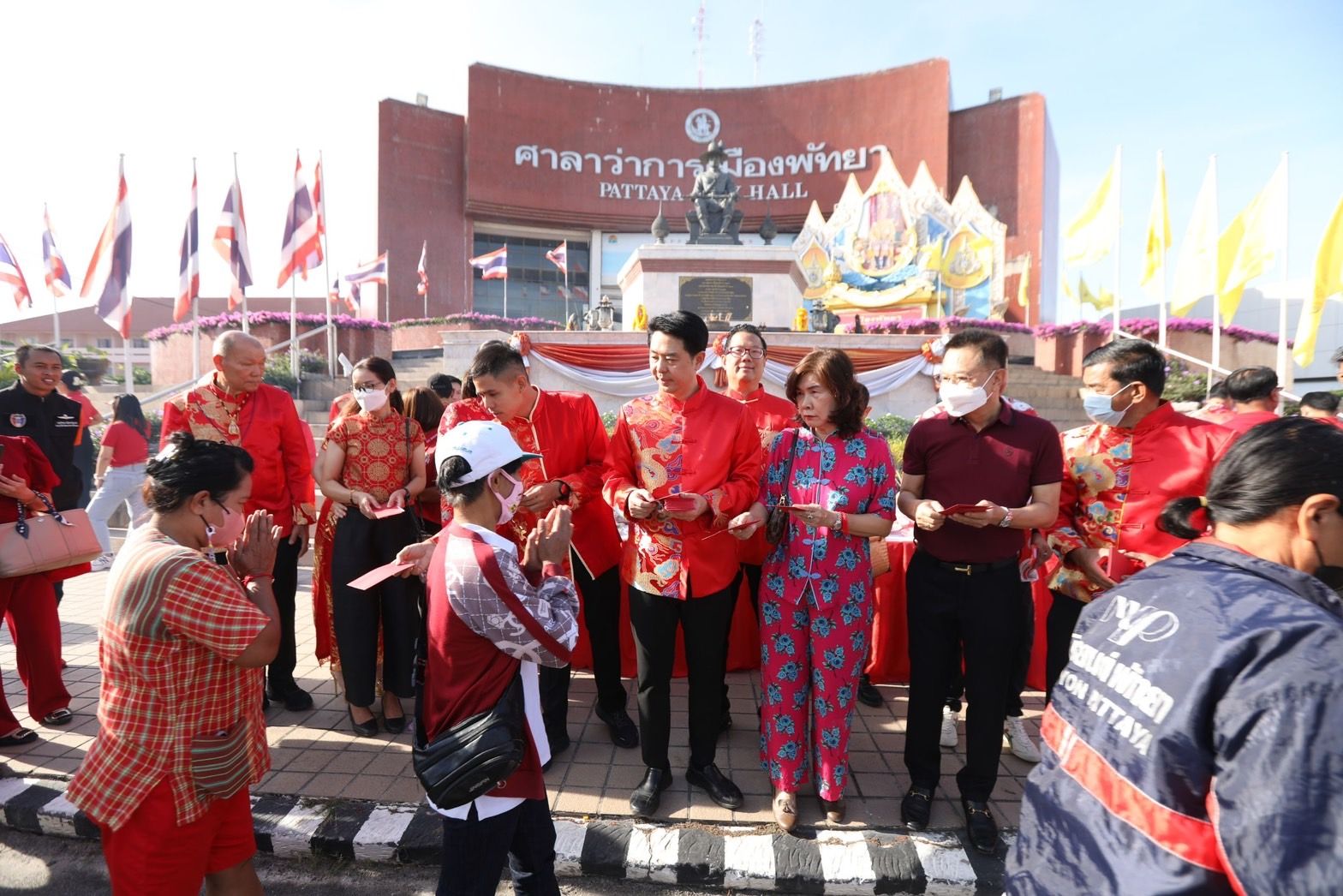 ภายในพิธีได้มีการจัดวางเครื่องเซ่นไหว้เจ้าเพื่อสักการะตามประเพณีความเชื่อของคนไทยเชื้อสายจีน พร้อมทั้งมีการแสดงมังกรและสิงโตมาร่วมสร้างสีสัน เพื่อความเป็นสิริมงคลเนื่องในโอกาสวันปีใหม่จีน จากนั้นนายกเมืองพัทยาพร้อมคณะผู้บริหารได้ร่วมแจกอั่งเปาให้กับประชาชนที่มาติดต่อราชการและมาร่วมงาน เพื่อเป็นการอวยพรตามความเชื่อของคนจีนว่าให้มีความสุข ความร่ำรวย และอายุยืนยาว