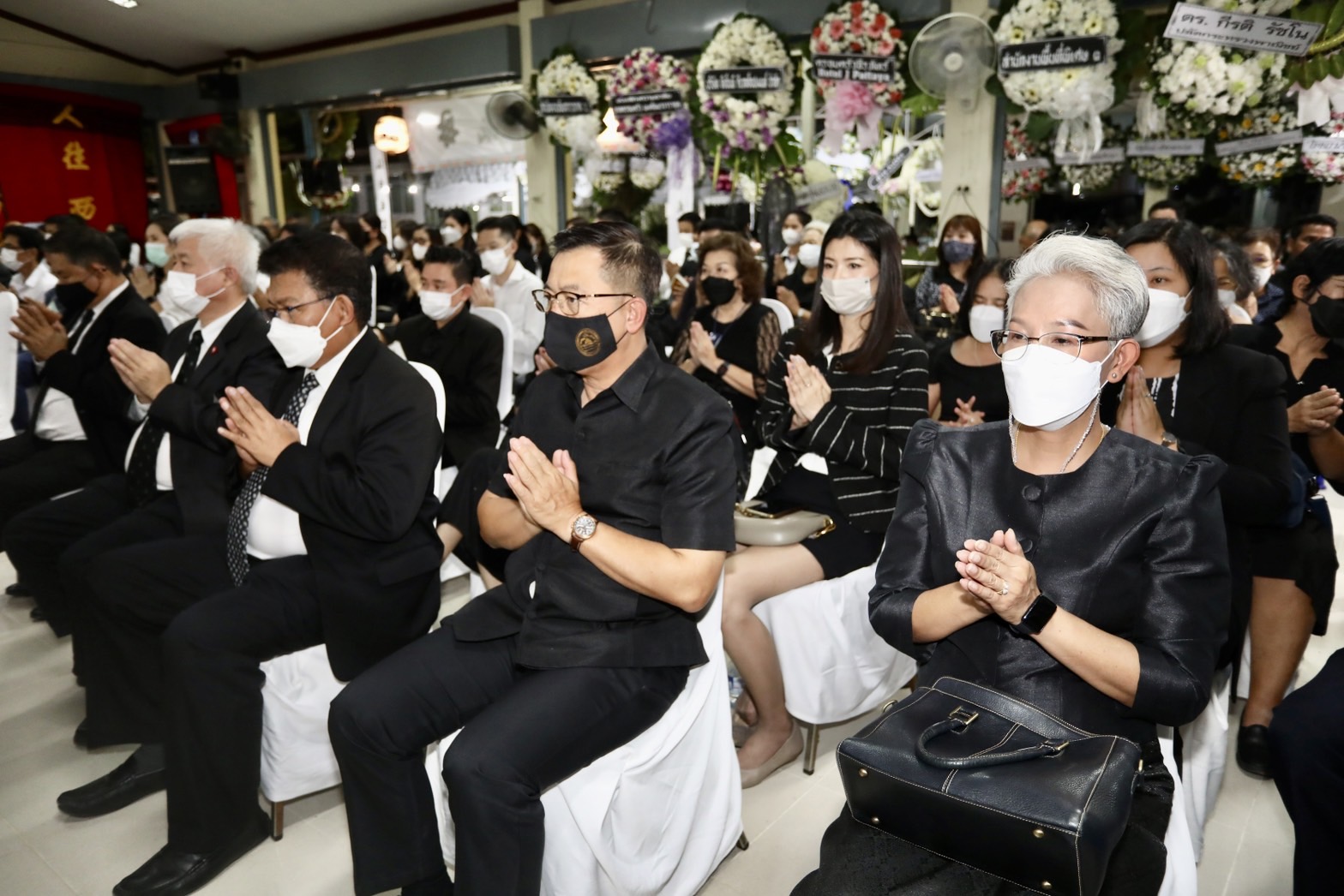 อาทิ นายปรเมศวร์ งามพิเชษฐ์ นายกเมืองพัทยา พร้อมนายวุฒิศักดิ์ เริ่มกิจการ รองนายกเมืองพัทยาพร้อมนายบรรลือ กุลละวณิชย์ ประธานสภาเมืองพัทยา คณะสมาชิกสภาเมืองพัทยาและคณะทำงานนายกเมืองพัทยา, นายชาญยุทธ เฮงตระกูล อดีตเลขานุการรัฐมนตรีว่าการกระทรวงศึกษาธิการ, นายสุวัจชัย อัญชลีวิวัฒน์  ประธานกรรมการบริหารในเครืออัญชลีวิวัฒน์กรุ๊ป, นายรุ่งเรือง ศิริปรีชาพงษ์ ประธานที่ปรึกษาสำนักงานอัยการภาค 2 พร้อมคณะสำนักอัยการภาค 2, นายเอกสิทธิ์ งามพิเชษฐ์ อดีตนายกสมาคมนักธุรกิจและการท่องเที่ยวเมืองพัทยา, นายรัตนชัย สุทธิเดชานัย ผู้ทรงคุณวุฒิเมืองพัทยา, นายกฤษณ์ จิระมงคล ผู้ช่วยประธานสภาอุตสาหกรรมท่องเที่ยวแห่งประเทศไทย, คณะผู้พิพากษาศาลจังหวัดพัทยา, คณะผู้ประนีประนอมประจำศาลแขวงพัทยา, นักธุรกิจ และ ญาติพี่น้องผู้วายชนม์ ร่วมงานพร้อมเพรียง