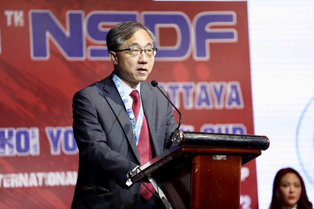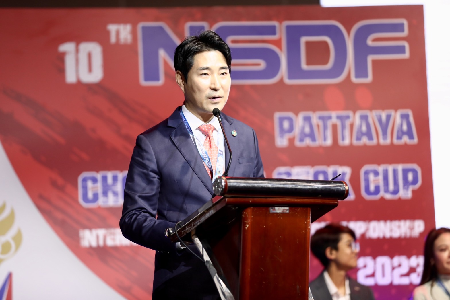 วันนี้( 11 ก.พ.66) ที่อาคารกรีฑาในร่ม ศูนย์กีฬาแห่งชาติภาคตะวันออก เมืองพัทยา จังหวัดชลบุรี ฯพณฯนายมุน ซึง ฮยอน เอกอัครราชทูตสาธารณรัฐเกาหลีประจำประเทศไทย เป็นประธานในพิธีเปิดการแข่งขันเทควันโด รายการ “10th NSDF PATTAYA CHOI YOUNG SEOK CUP INTERNATIONAL TAEKWONDO CHAMPIONSHIP 2023” (เอ็นเอสดีเอฟชอยองซอก)