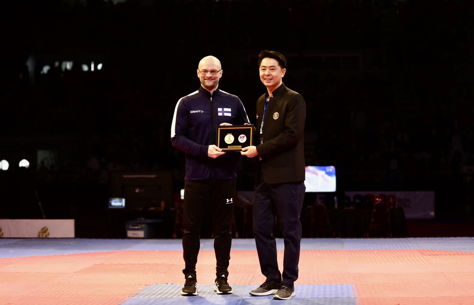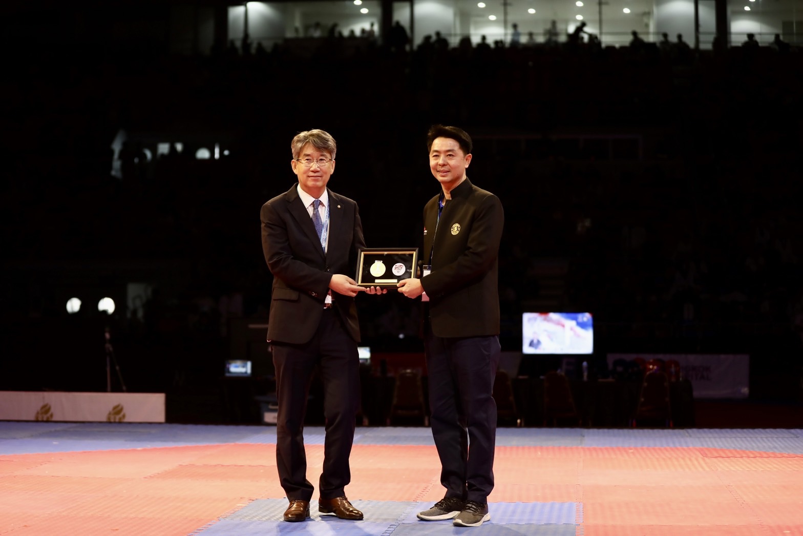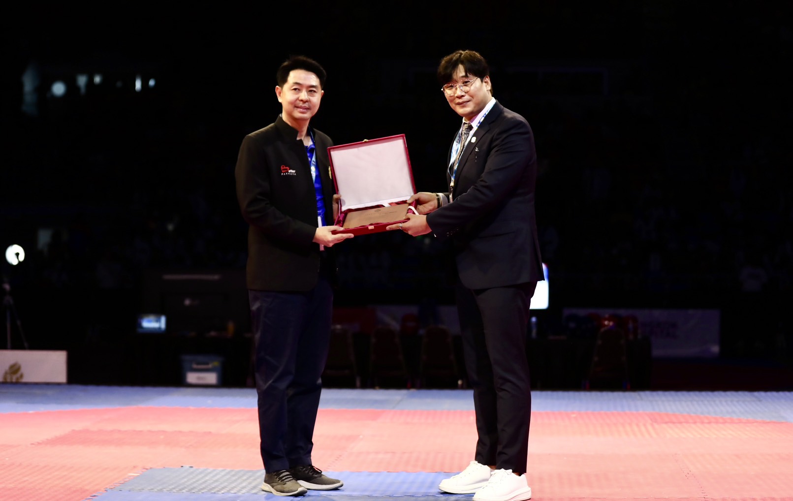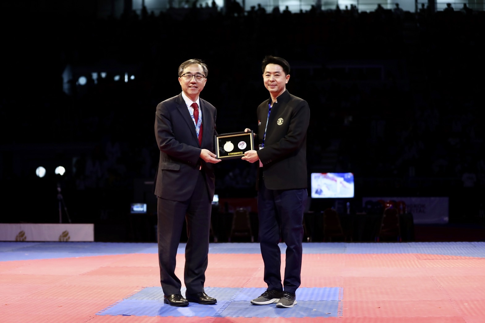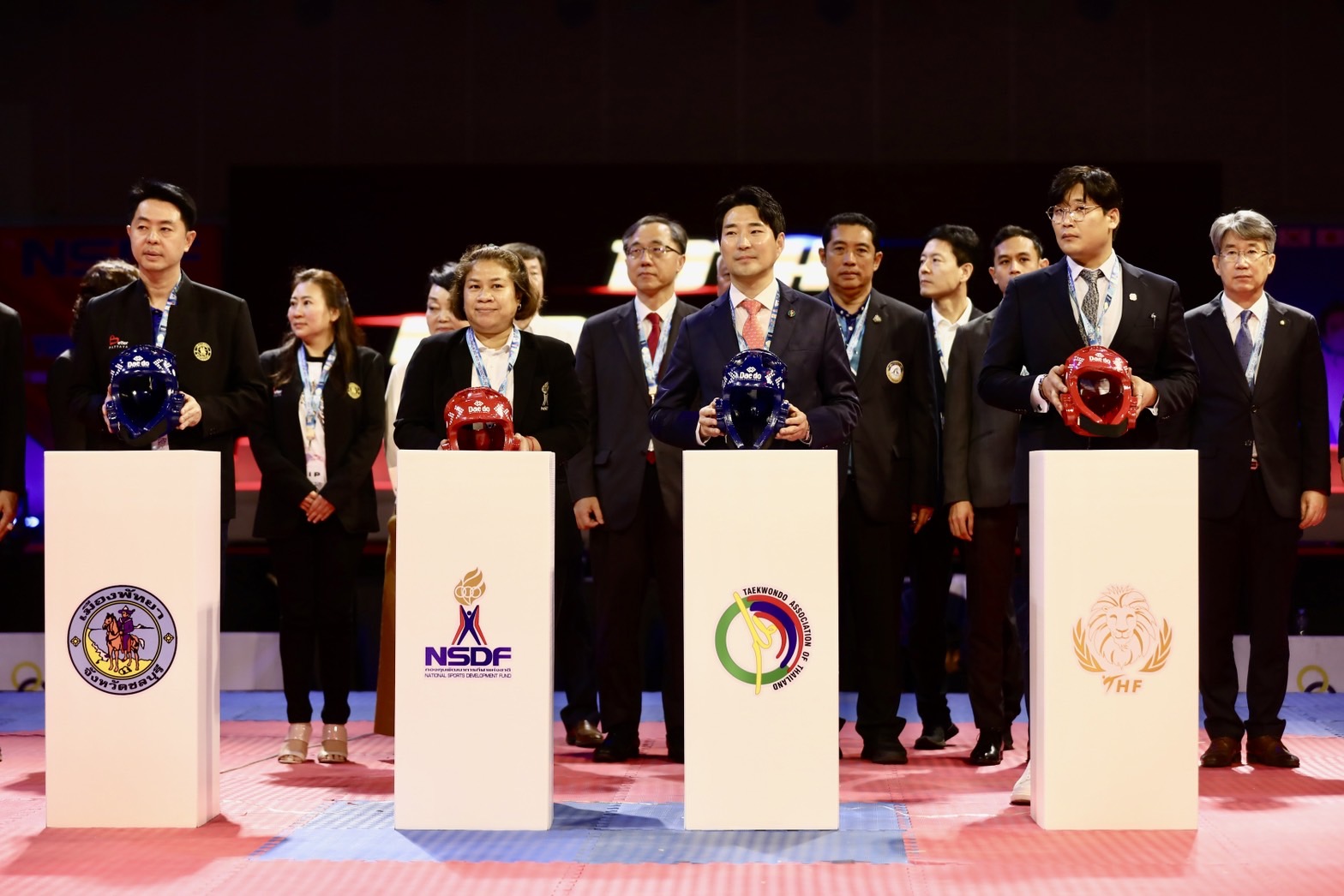 พร้อมด้วย นายปรเมศวร์ งามพิเชษฐ์ นายกเมืองพัทยา นายสนธยา คุณปลื้ม นายกสมาคมกีฬาแห่งจังหวัดชลบุรี ดร.ชัชชัย ชเวประธานฝ่ายจัดการแข่งขัน และร้อยเอกหญิงชนาธิป ซ้อนขำ ผู้ฝึกสอนกีฬาเทควันโดทีมชาติไทย