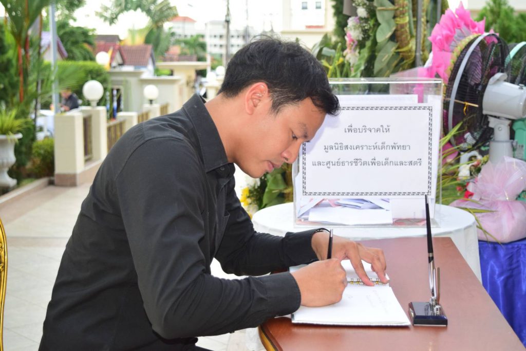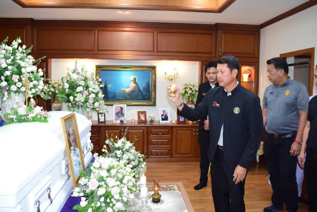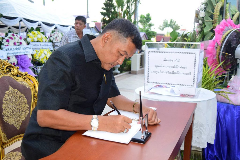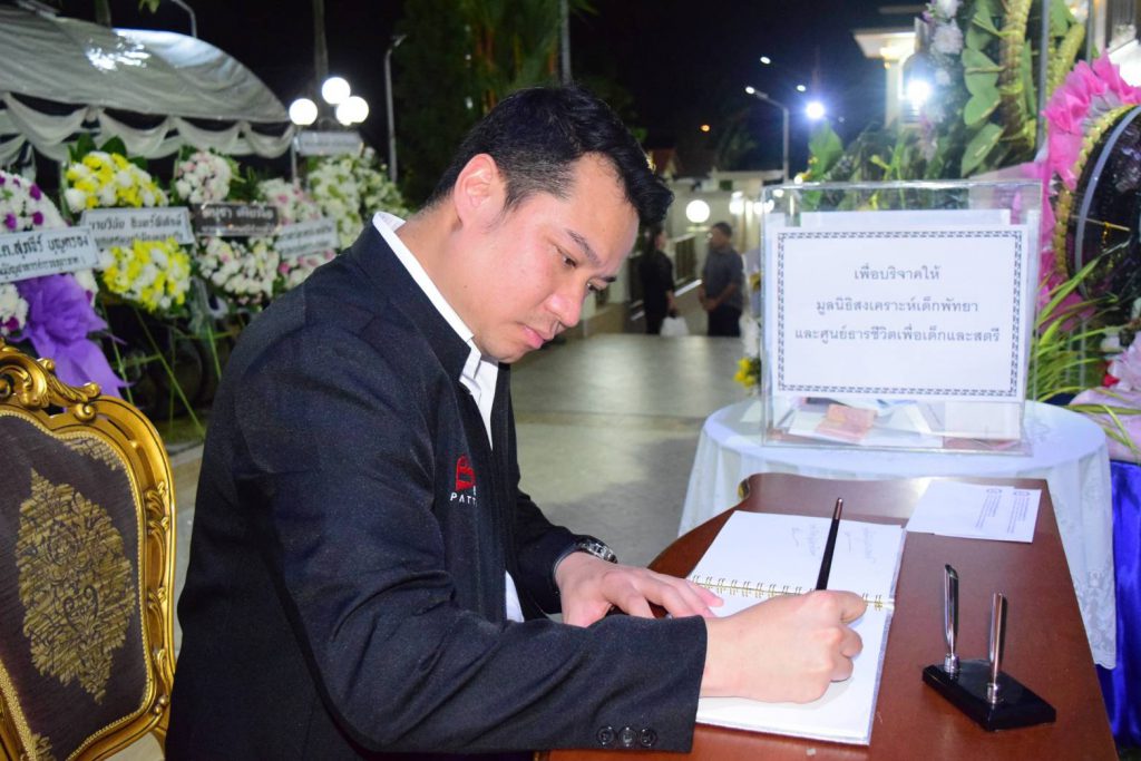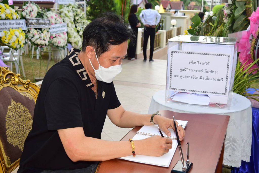 โดยมีแขกผู้มีเกียรติร่วมแสดงความไว้อาลัย จำนวนหลายท่าน อาทิ นายนคร ผลลูกอินทร์ นายสกน ผลลูกอินทร์ นายอนุรักษ์ อินทร์พิทักษ์ สมาชิกสภาองค์การบริหารส่วนจังหวัดชลบุรี, นายบรรจง บัณฑูรประยุกต์ นางจิดาภา สุวัตถาภรณ์ นายจิรวัฒน์ ปลุกใจ นายดำรงค์เกียรติ พินิจการ สมาชิกสภาเมืองพัทยา, หน่วยงานภาครัฐ ภาคเอกชน สมาคมฯลฯ นักธุรกิจ และญาติพี่น้องผู้วายชนม์ร่วมงานพิธีพร้อมเพรียง