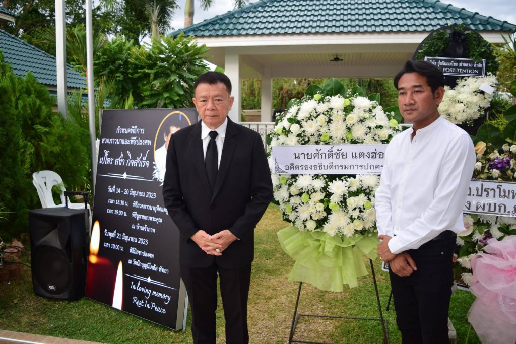โดยภายในงานมีแขกผู้มีเกียรติมาร่วมแสดงความไว้อาลัยกับครอบครัวผู้วายชนม์ จำนวนหลายท่าน อาทิ นายสนธยา คุณปลื้ม อดีตรัฐมนตรีว่าการกระทรวงวัฒนธรรม, นายขวัญเลิศ พานิชมาท อดีต สมาชิกสภาผู้แทนราษฎรจังหวัดชลบุรี , นายพิสิษฐ สิริสวัสดินุกูล นายอำเภอบางละมุง, พ.ต.อ.ทวี กุดแถลง ผกก.สภ.หนองปรือ, ว่าที่ร้อยตรี ชาญยุทธ ยังปรีดา คณะทำงานนายกเมืองพัทยา, นายศักดิ์ชัย แตงฮ่อ อดีตนายอำเภอบางละมุง, นายเอกประภู เอกะสิงห์ ผู้ช่วยเลขานุการประธานสภาเมืองพัทยา, หน่วยงานภาครัฐ ภาคเอกชน สมาคมฯลฯ นักธุรกิจ และญาติพี่น้องร่วมงานพิธีพร้อมเพรียง