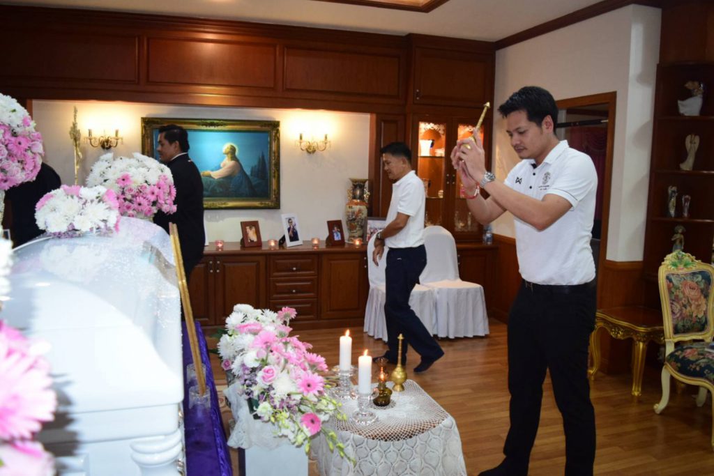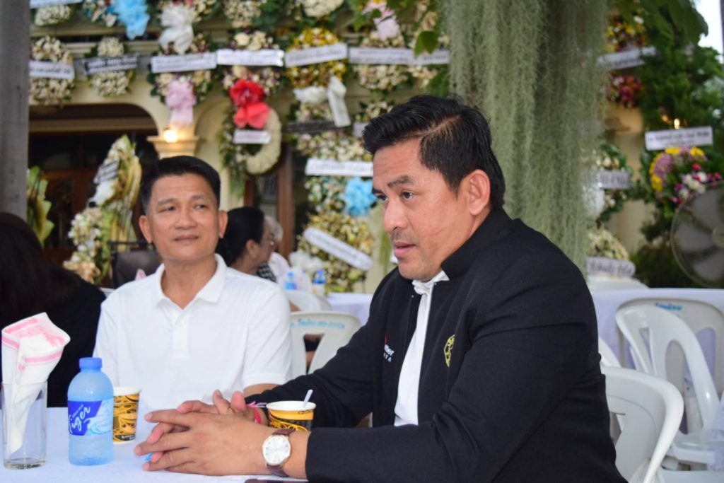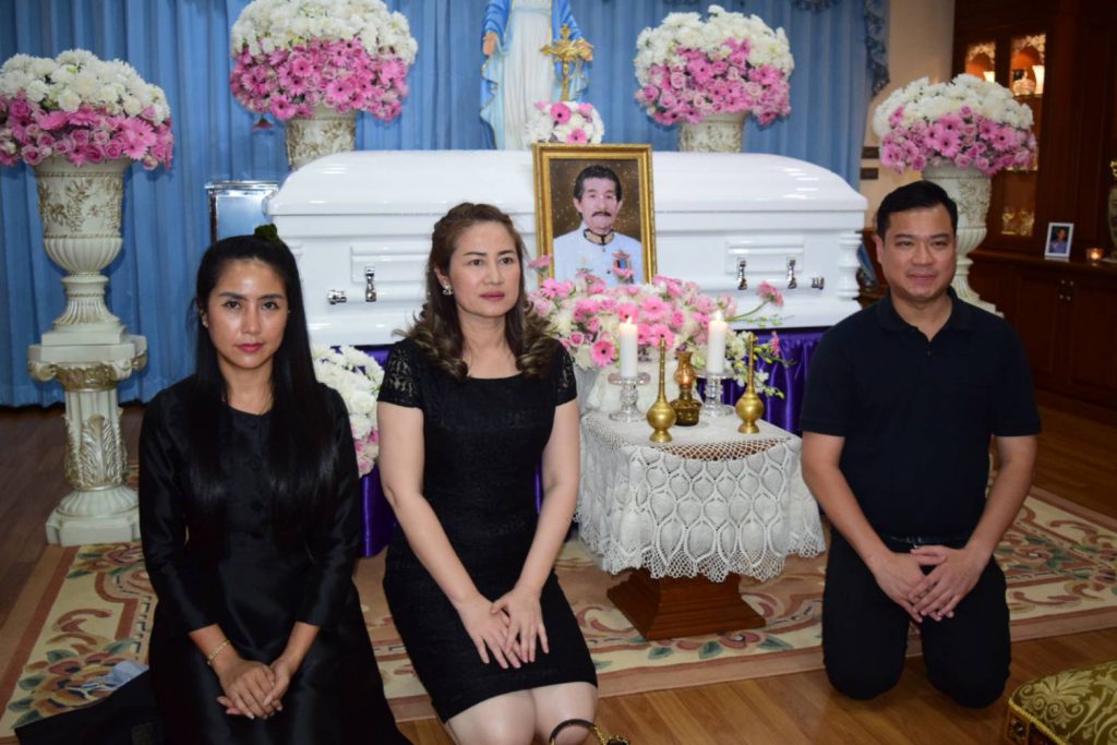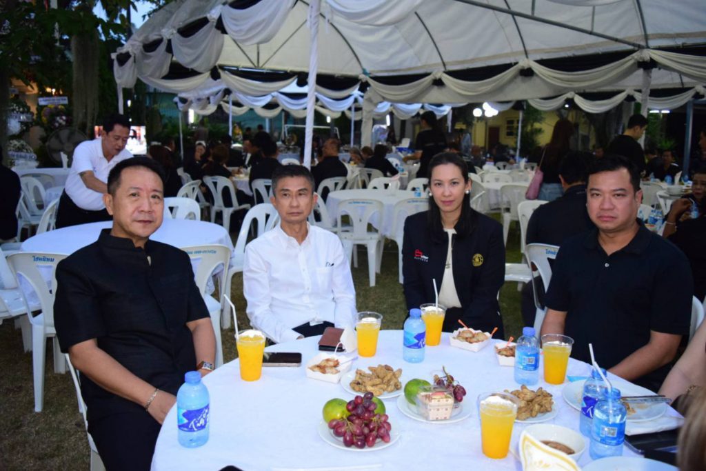 โดยภายในงานมีแขกผู้มีเกียรติมาร่วมแสดงความไว้อาลัยกับครอบครัวผู้วายชนม์ อาทิ นายนริศ นิรามัยวงศ์ รองผู้ว่าราชการจังหวัดชลบุรี, พล.อ.อาชวินทร์ เศวตเศรนี นักเรียนเตรียมทหารรุ่น 4, นางสาวทิฐิพันธ์ เพ็ชรตระกูล รองนายกเมืองพัทยา พร้อมนายดำรงค์เกียรติ พินิจการ นายศุภฤกษ์ ชมภูนุช สมาชิกสภาเมืองพัทยาและนายเอกประภู เอกะสิงห์ ผู้ช่วยเลขานุการประธานสภาเมืองพัทยา, นายกิติวงศ์ ชัยศุภกิจ ผู้จัดการทั่วไปบริษัท อัลคาซ่าร์ จำกัด, หน่วยงานภาครัฐ ภาคเอกชน สมาคมฯลฯ นักธุรกิจ และญาติพี่น้องร่วมงานพิธีพร้อมเพรียง