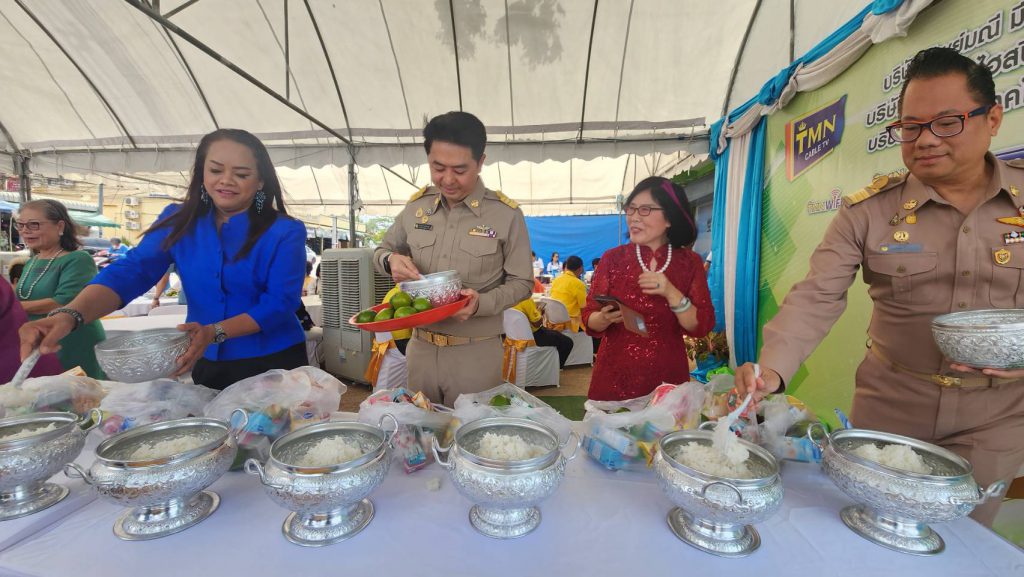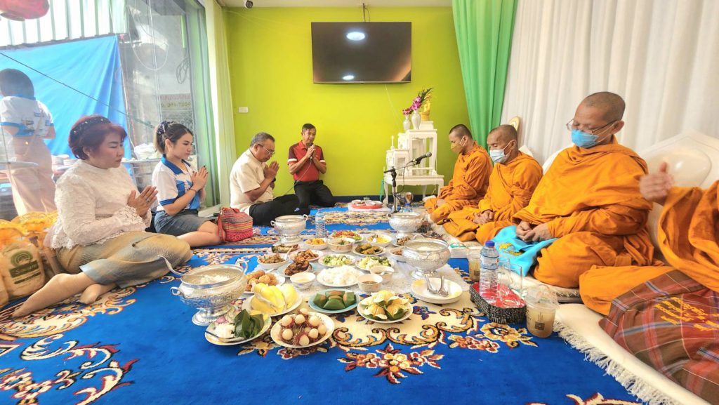 โดยเริ่มพิธีในช่วงเช้าด้วยการใหว้เจ้าที่เจ้าทาง เทวดาฟ้าดิน และพิธิทำบุญตักบาตรเริ่มขึ้นเวลา 10:30 น. นำโดย นายสมสิน ทิพย์มณี ประธานกรรมการบริหารบริษัททิพย์มณี มีเดียเน็ตเวิร์ค จำกัด คุณสยามรัช ทิพย์มณี ผู้จัดการทั่วไปบริษัททิพย์มณี มีเดียเน็ตเวิร์ค จำกัด พร้อมผู้บริหารและพนักงาน ได้นิมนต์พระสงฆ์สวดเจริญพระพุทธมนต์เพื่อเป็นศิริมงคล จากนั้นผู้บริหารและพนักงาน ได้ร่วมกันตักบาตรข้าวสวย ถวายภัตตราหารคาวหวาน และถวายสังฆทาน แด่พระภิกษุสงฆ์ เพื่อความเป็นศิริมงคล