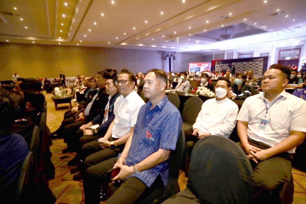 วันที่ 12 กรกฎาคม 2566 ที่โรงแรมดุสิตธานี พัทยา นายพิสิษฐ สิริสวัสดินุกูล นายอำเภอบางละมุง นายปรเมศวร์ งามพิเชษฐ์ นายกเมืองพัทยา คณะผู้บริหารเมืองพัทยา นายณัฐ ครุฑสูตร ผู้อำนวยการฝ่ายกิจกรรม การท่องเที่ยวแห่งประเทศไทย พ.ต.ท.อรุษ สภานนท์ สารวัตรจราจรสถานีตำรวจภูธร เมืองพัทยา นายสุชาติ แจสุรภาพ สมาคมกีฬากรีฑาแห่งประเทศไทย ในพระบรมราชูปถัมภ์ และผู้เกี่ยวข้อง ร่วมงานแถลงข่าวการแข่งขัน Pattaya Marathon 2023 พัทยามาราธอน ครั้งที่ 30 ประจำปี 2566