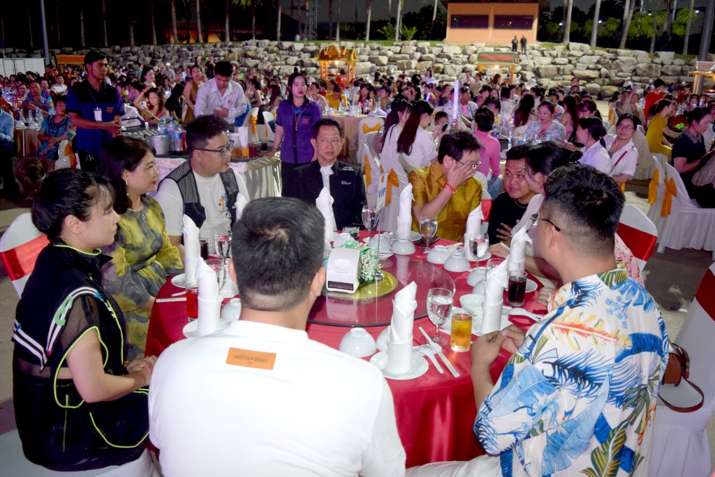 (28 พ.ย. 66) ที่ลานอารีน่า สวนนงนุชพัทยา นายปรเมศวร์ งามพิเชษฐ์ นายกเมืองพัทยา ได้มอบหมายให้ นายรัตนชัย สุทธิเดชานัย ผู้ทรงคุณวุฒิเมืองพัทยา และ ผู้แทนภาคกลางและภาคตะวันออก สำนักส่งเสริมการจัดประชุมและนิทรรศการ (สสปน.) กล่าวต้อนรับนักท่องเที่ยวชาวจีน จำนวน 1,400 คน ซึ่งเป็นพนักงานเจ้าหน้าที่รวมทั้งผู้บริหาร บริษัท อ้ายืน่วนซิง ซึ่งเป็นบริษัทดำเนินธุรกิจเกี่ยวกับด้านความงาม และเครื่องสำอาง จากสาธารณรัฐประชาชนจีน