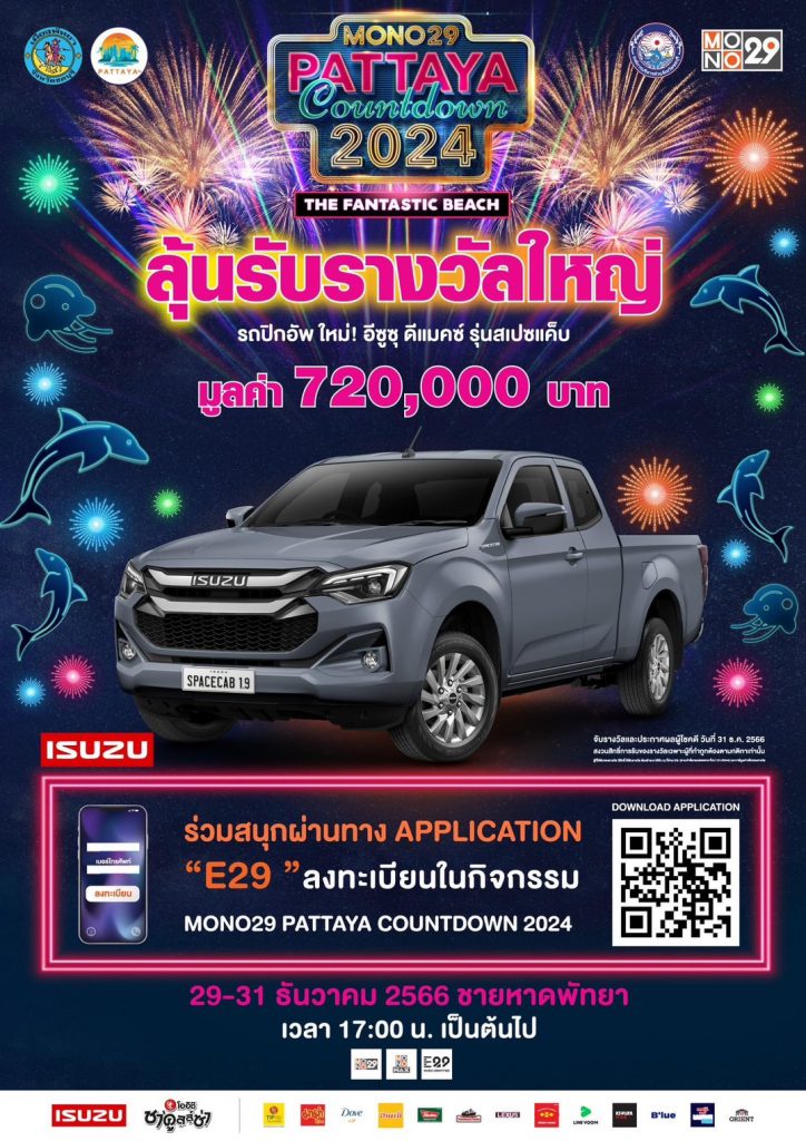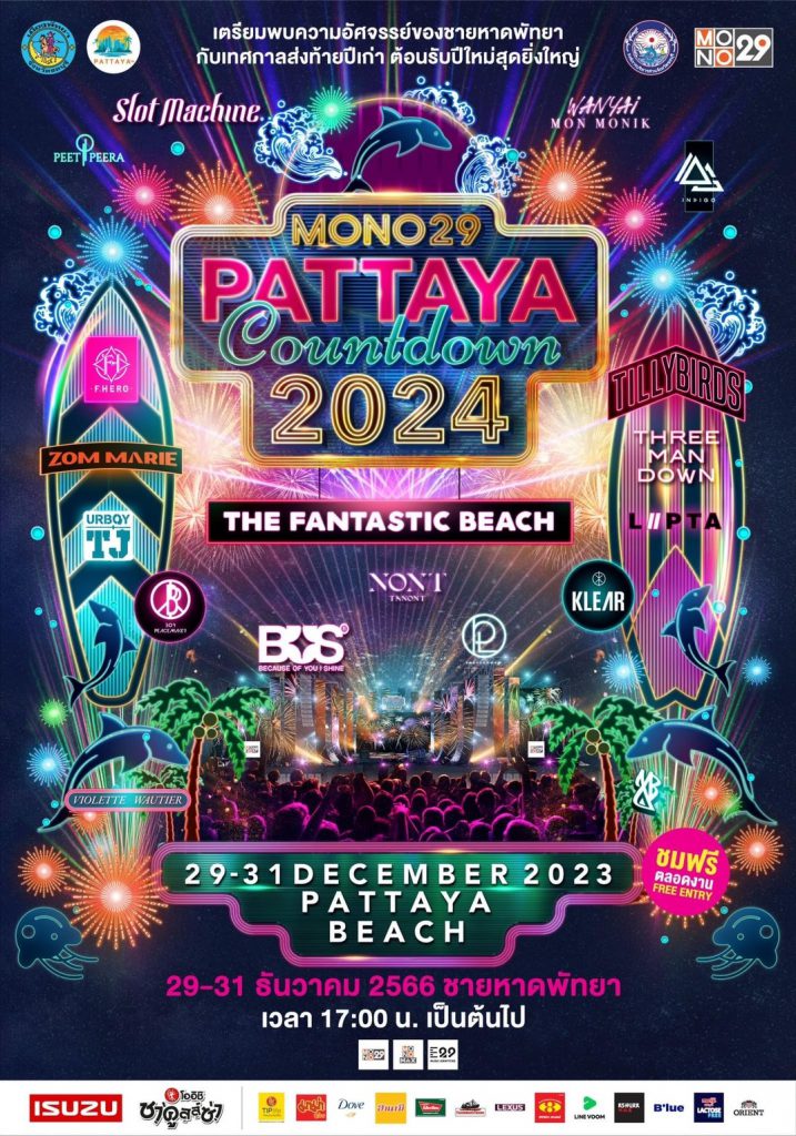 เมืองพัทยา ร่วมกับองค์การบริหารส่วนจังหวัดชลบุรี เตรียมส่งมอบความสุขในช่วงเทศกาลส่งท้ายปีเก่าต้อนรับปีใหม่อย่างยิ่งใหญ่ ให้กับชาวจังหวัดชลบุรีและจังหวัดใกล้เคียง ระหว่างวันที่ 29-31 ธันวาคม 2566 โดยในปีนี้ได้เนรมิตรชายหาดพัทยาเป็นสถานที่จัดงานมหกรรมความบันเทิง “PATTAYA COUNTDOWN 2024 ในธีม “The Fantastic Beach” กับเสียงดนตรีจากศิลปินชั้นนำของประเทศ พร้อมการแสดงพลุเฉลิมฉลองเทศกาลส่งท้ายปีเก่าต้อนรับปีใหม่อย่างยิ่งใหญ่ ตลอด 3 คืน ให้สมกับความเป็นเทศกาลเฉลิมฉลองส่งท้ายปีเก่าต้อนรับปีใหม่ที่ดีที่สุดของประเทศไทย เพื่อเป็นการส่งเสริมการท่องเที่ยวของเมืองพัทยา ยกระดับคุณภาพการท่องเที่ยวในพื้นที่สู่การท่องเที่ยวระดับโลก เต็มอิ่มกับกิจกรรมต่าง ๆ ตลอด 3 วัน 3 คืน พร้อมโปรดักชั่น แสง สี เสียง จัดเต็มอย่างยิ่งใหญ่ รวมทั้งผู้มาร่วมงานยังมีสิทธิ์ลุ้นรับรถปิกอัพ ใหม่! อีซูซุ ดีแมคซ์ รุ่นสเปซแค็บ มูลค่า 720,000 บาทอีกด้วย