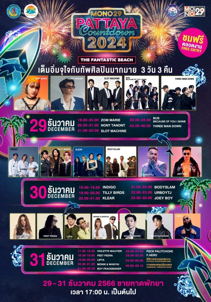 เตรียมพบกับมหกรรมความบันเทิงระดับโลกส่งท้ายปีเก่าต้อนรับปีใหม่ “PATTAYA COUNTDOWN 2024” จัดเต็ม ! แสง สี เสียง ! ครั้งแรกบนชายหาดพัทยากลาง! 29-31 ธ.ค.นี้