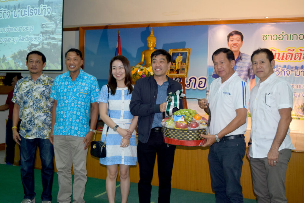 เมื่อนายวีกิจ มานะโรจน์กิจ นายอำเภอบางละมุง พร้อมภริยา เดินทางมาถึง นายปรเมศวร์ งามพิเชษฐ์ นายกเมืองพัทยา ได้ให้การต้อนรับพร้อมกล่าวแสดงความยินดีและมอบกระเช้าเป็นที่ระลึก