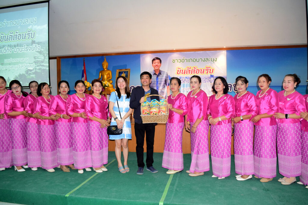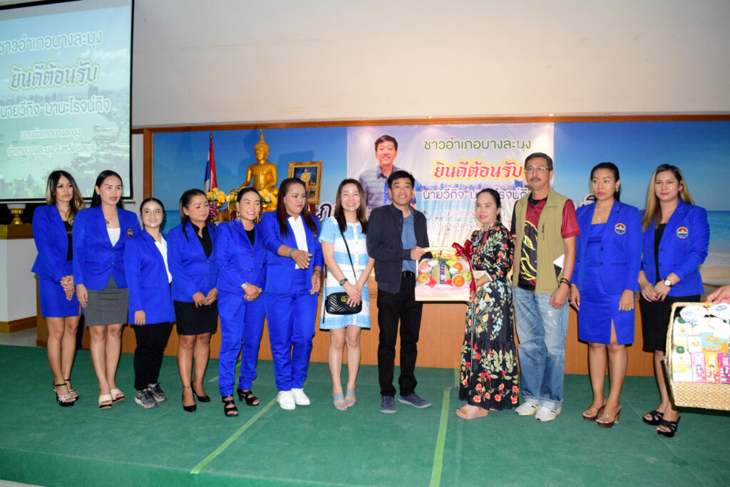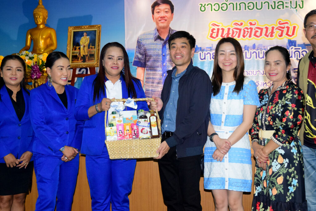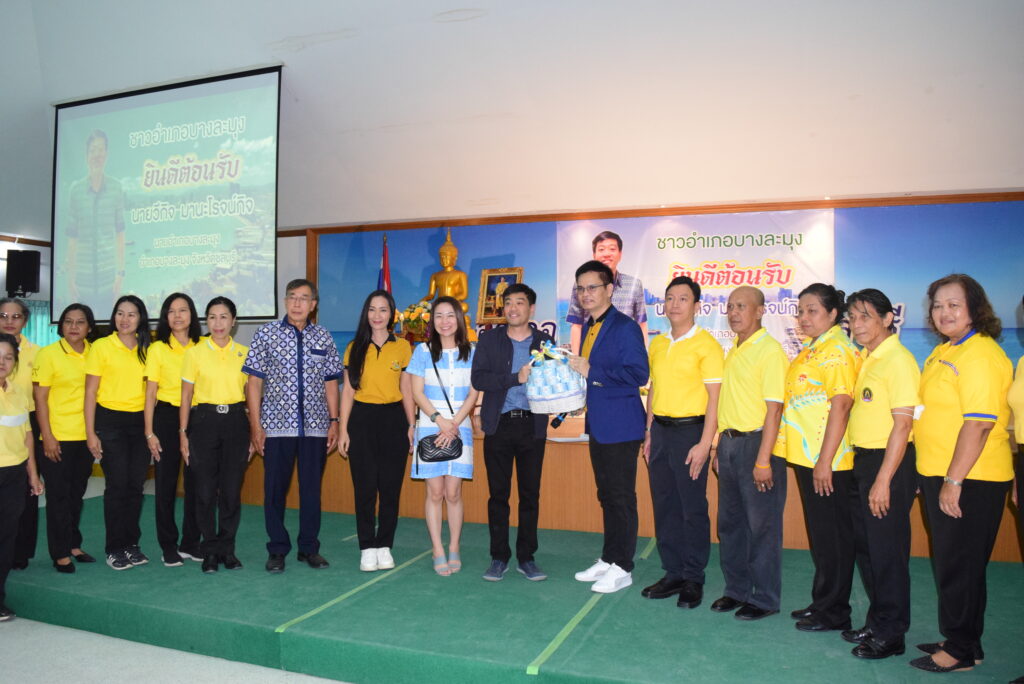 หลังจากได้เวลาอันควร ทางคณะเจ้าหน้าที่ข้าราชการสังกัดอำเภอบางละมุงได้กล่าวรายงานคัวและแนะนำตัวในส่วนงานต่างๆ ก่อนที่ตัวแทนองค์กรปกครองส่วนท้องถิ่น และหน่วยงานต่างๆ จะทยอยมอบกระเช้าแสดงความยินดีและถ่ายภาพเป็นที่ระลึกด้วยบรรยากาศที่เป็นกันเอง