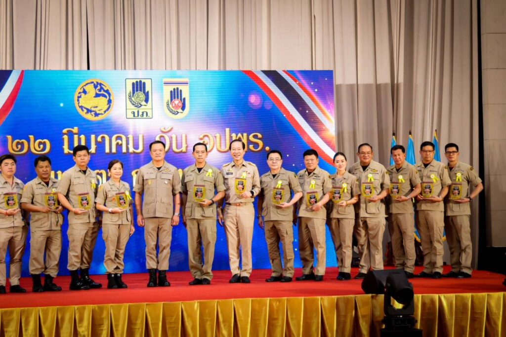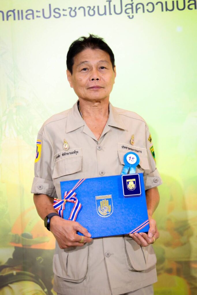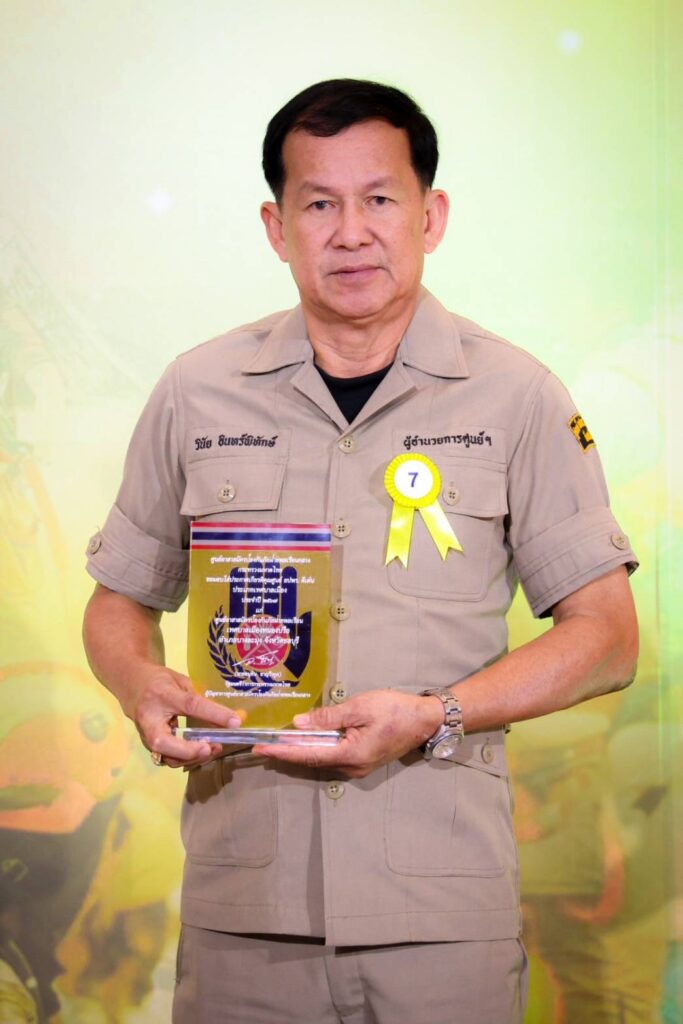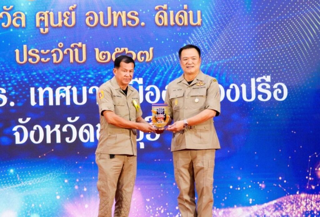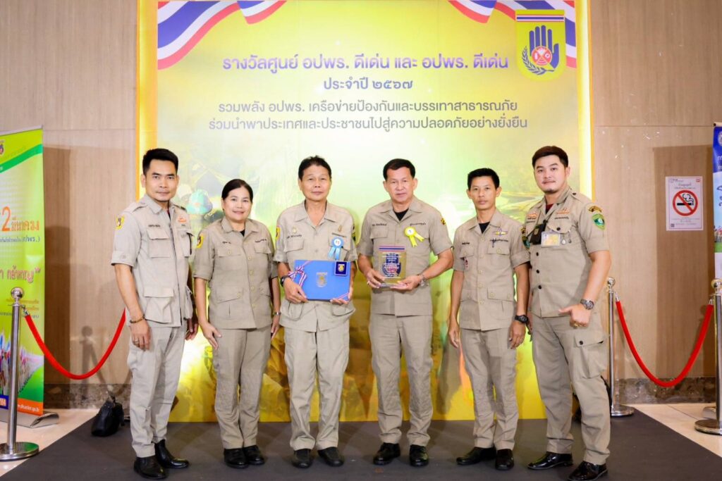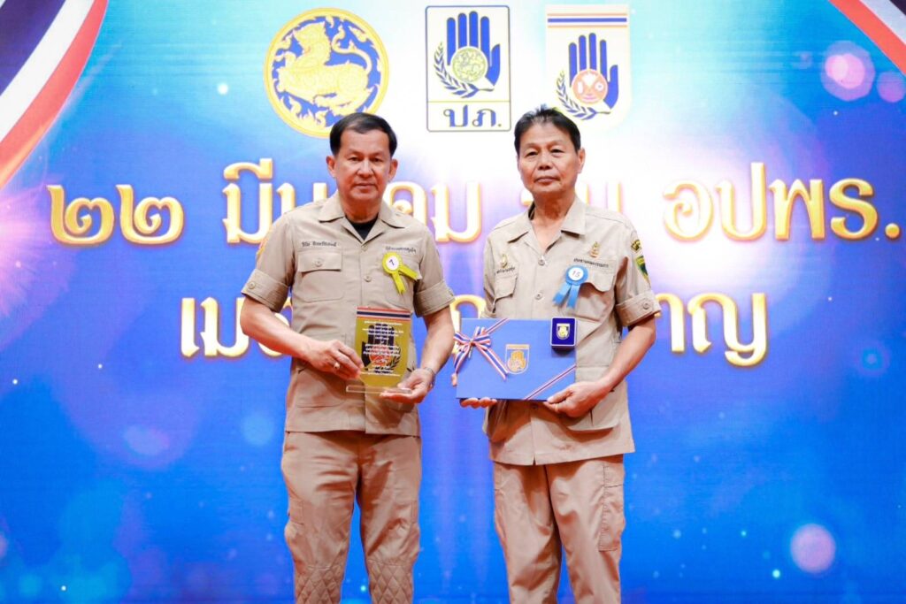 และนายธงชัย พิทักษานนท์กุล ประธานกรรมการประสานงานศูนย์อาสาสมัครป้องกันภัยฝ่ายพลเรือนเทศบาลเมืองหนองปรือ เข้ารับรางวัลอาสาสมัครป้องกันภัยฝ่ายพลเรือน ดีเด่น ประจำปี 2567