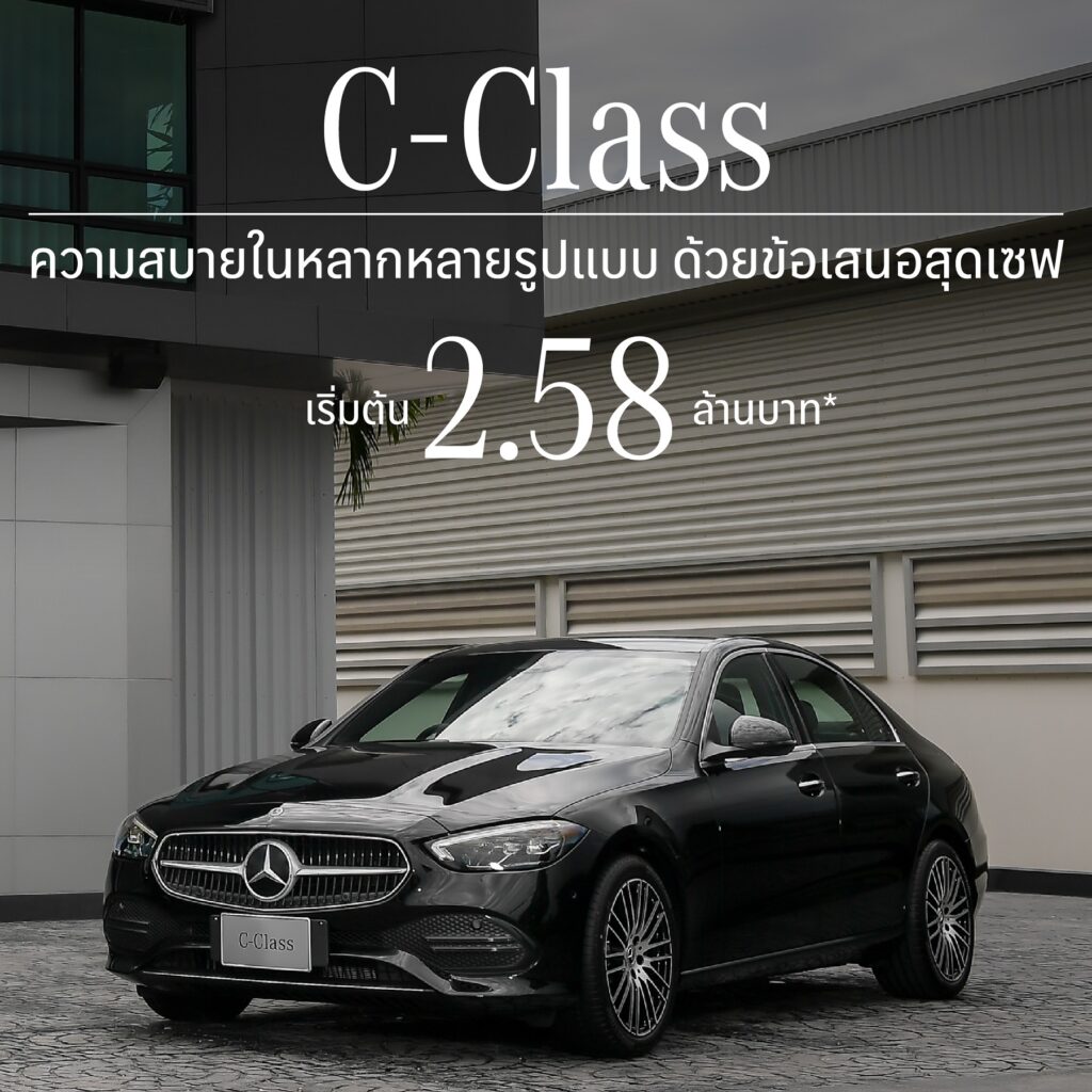 พิเศษ! เฉพาะลูกค้าที่จองรถยนต์  Mercedes-Benz รุ่นใหม่  ชำระเป็นเงินสด หรือทำสัญญาทางการเงินกับ “เมอร์เซเดส-เบนซ์ โมบิลิตี้” ระหว่างวันที่ 18 มีนาคม – 30 เมษายน 2567 โดยเริ่มสัญญาภายใน 30 มิถุนายน 2567 ได้สิทธิ์ลุ้นรับรถยนต์ Mercedes-Benz C 220 d AMG Line จำนวน 1 รางวัล มูลค่า 2,880,000 บาท หรือ ทองคำแท่ง หนัก 5 บาท และ 10 บาท หนักรวม 30 บาท รวมมูลค่าร่วม 4 ล้านบาท